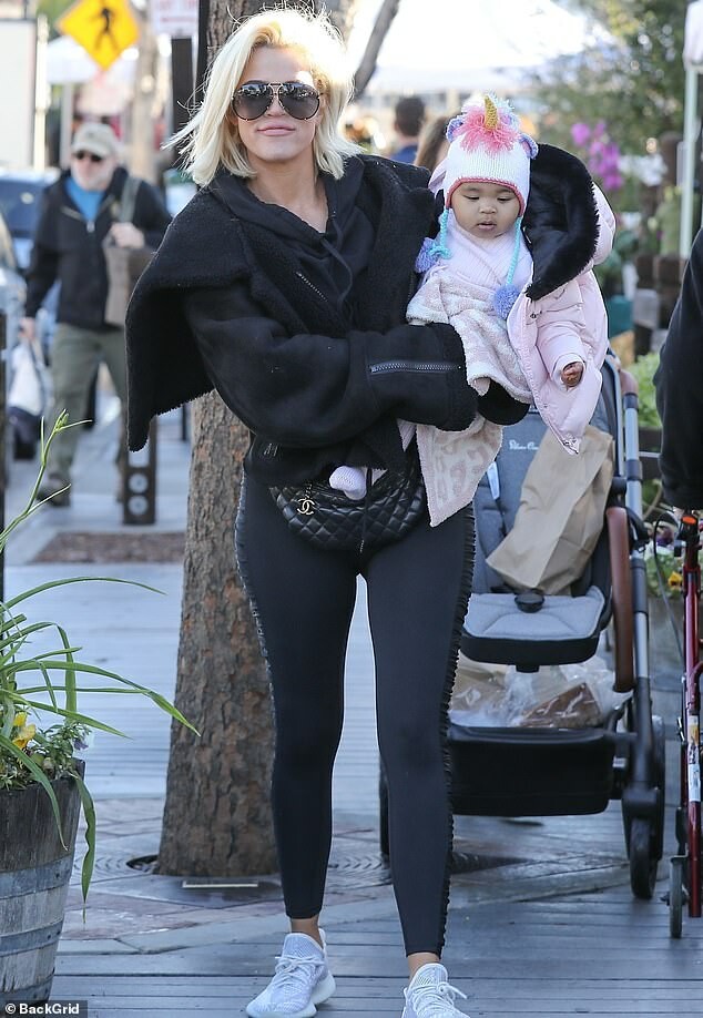 at an LA Farmer's Market with daughter True, 10 months