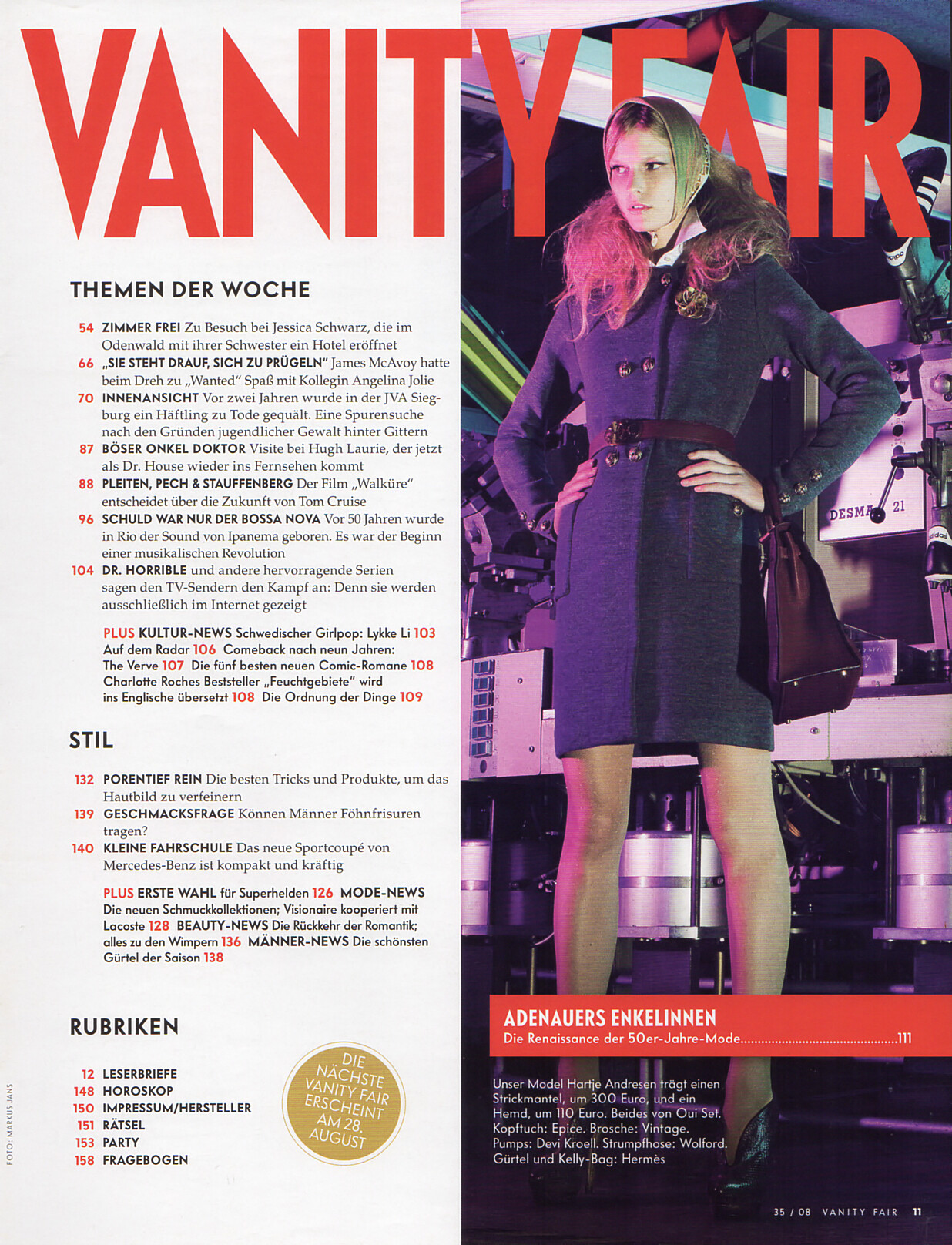 content + "STIL" + "FORTSCHRITT HALTEN" - VANITY FAIR Germany 21. August 2008 #35 by Markus Jans