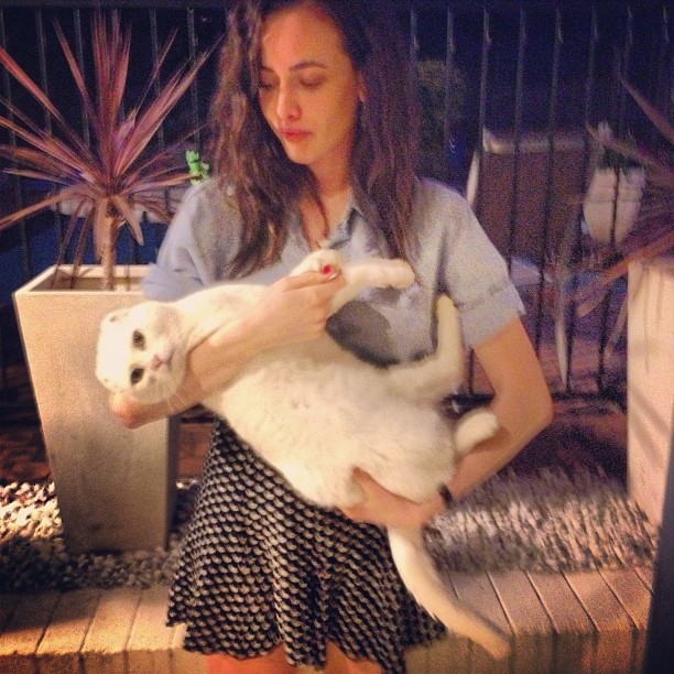 That is a fugly dress but it looks good on her in spite of that!