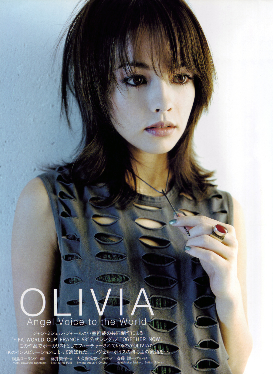 Olivia was discovered by the director of "Rising Productions" (Vision Factory) while attending the Okinawa Actors' School, subsequently signing to Avex Trax as part of the Japanese idol group D&D. Famed producer Tetsuya Komuro heard of Olivia one day and decided that she would be perfect for a project in which he was planning along with Jean Michel Jarre. The project was to create the theme song for the 1998 FIFA World Cup entitled Together Now. The single was released a month after D&D's first and only album. It was then decided that D&D would disband and be separated into two different groups: 'OLIVIA' as Olivia's solo-project and Aya & Chika as Aya & Chika from D&D.