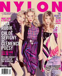 Chloë Sevigny continues to toe the blurry line between serious actress and controversial fashion icon, but for today's purposes, we'll focus on the fashion end of things. Nylon’s beauty issue hits stands next week, and Sevigny graces the cover, flanked by Anja Rubik and Clémence Poésy. These three blonde beauties also happen to be the spring faces of Chloé perfume. And if that's not enough Chloë-Chloé synergy for you, take note that the girls all happen to be wearing the label's garments as well. So, just to recap, that's Chloë for Chloé, with the other Chloé girls, all wearing Chloé. Try saying that five times fast. —Kendall Herbst