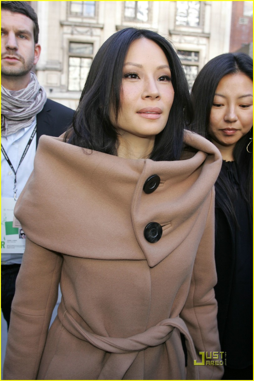 Actress Lucy Liu sits on the front row for the Herve Leger collection at New York Fashion Week February 15, 2009.