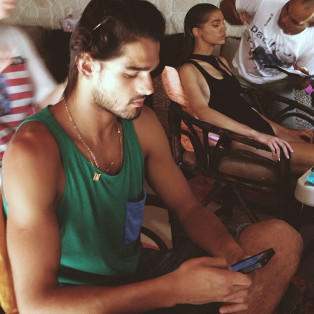 He's in Noronha(Brazil)together with Candice Swanepoel.I don't know are they working together or what,but few people post on tumblr that they saw them together on some beach in Brazil.I really hope theat they are shooting some campaign together.
