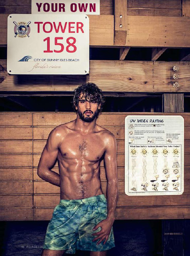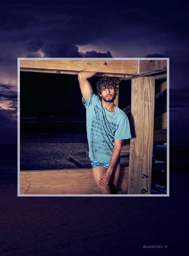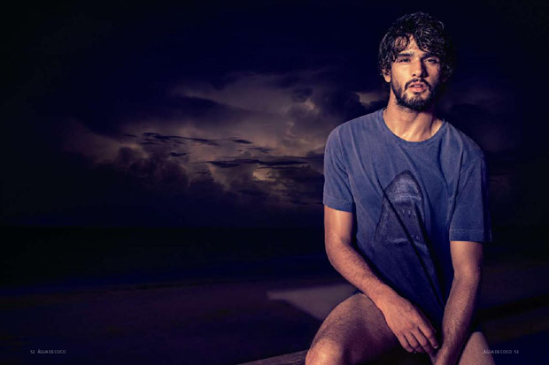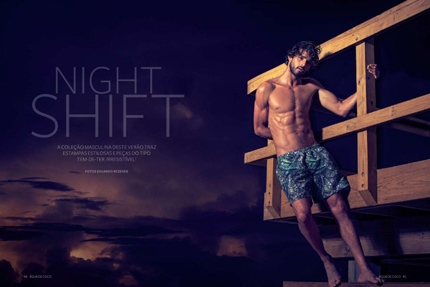 Supermodel Marlon Teixeira stars in Agua de Coco‘s Summer 2015 magazine captured by photographer Eduardo Rezende with art direction from Daniel Burman. In charge of hair and makeup for the Night Shift story was Max Weber.
