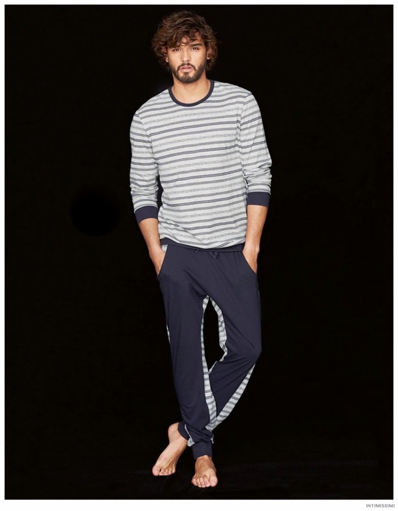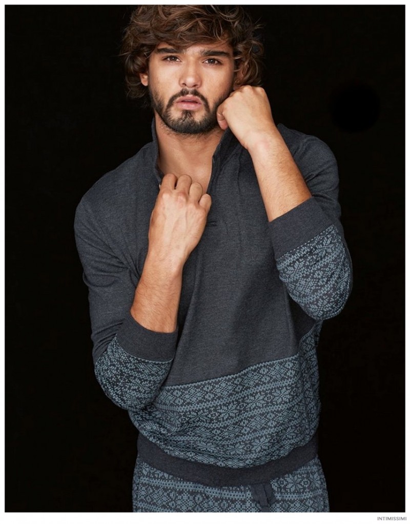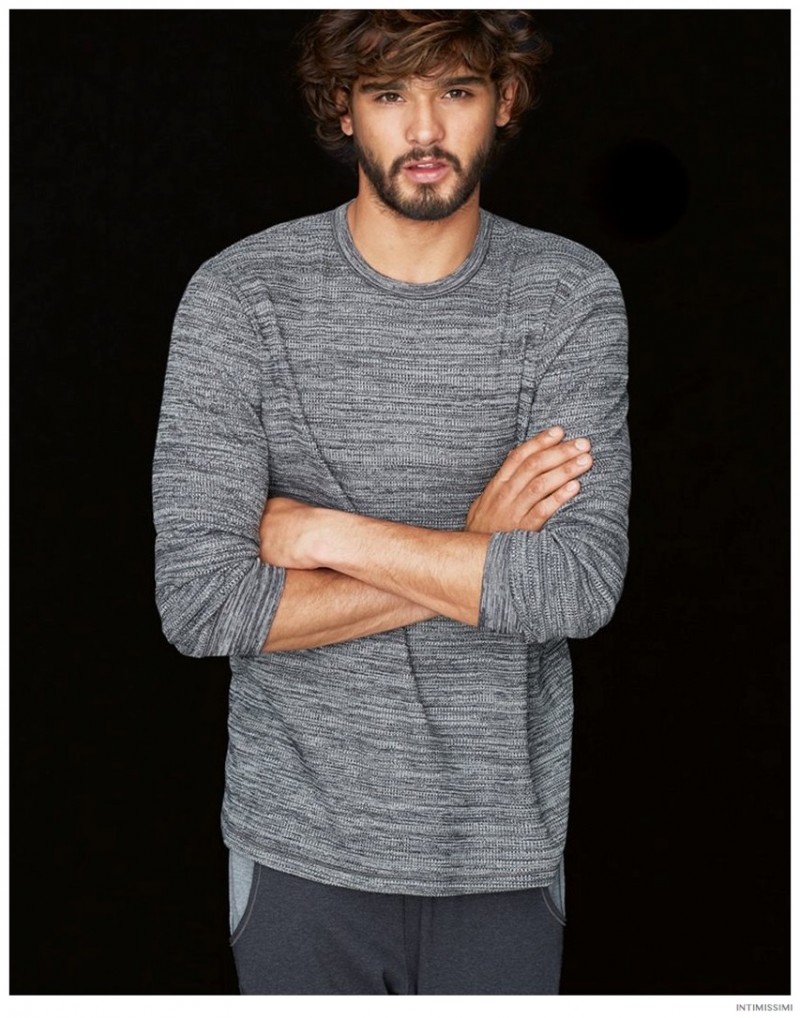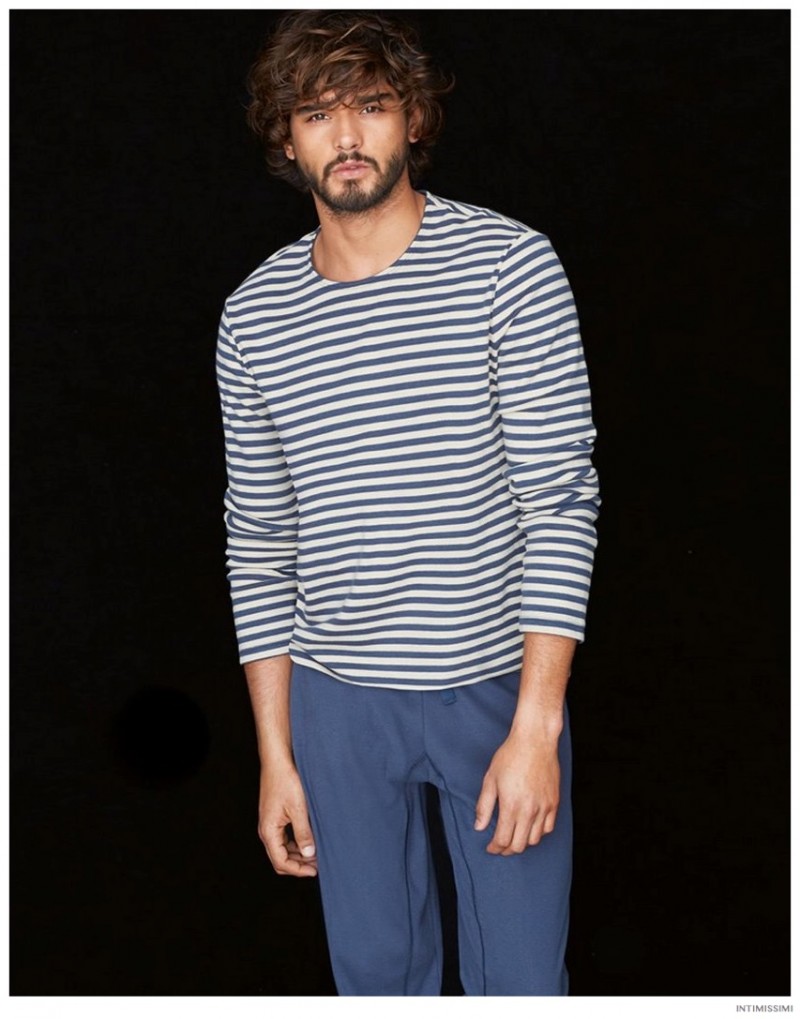 Marlon for Intimissimi-Underwear and lounge brand Intimissimi taps Brazilian model Marlon Teixeira to star in its Winter 2014 look book. Hitting the photo studio and posing against a stark black backdrop, Marlon models the label’s latest wears. From striped boxer briefs to comfortable long-sleeve shirts and lounge pants, Marlon is a relaxed vision.