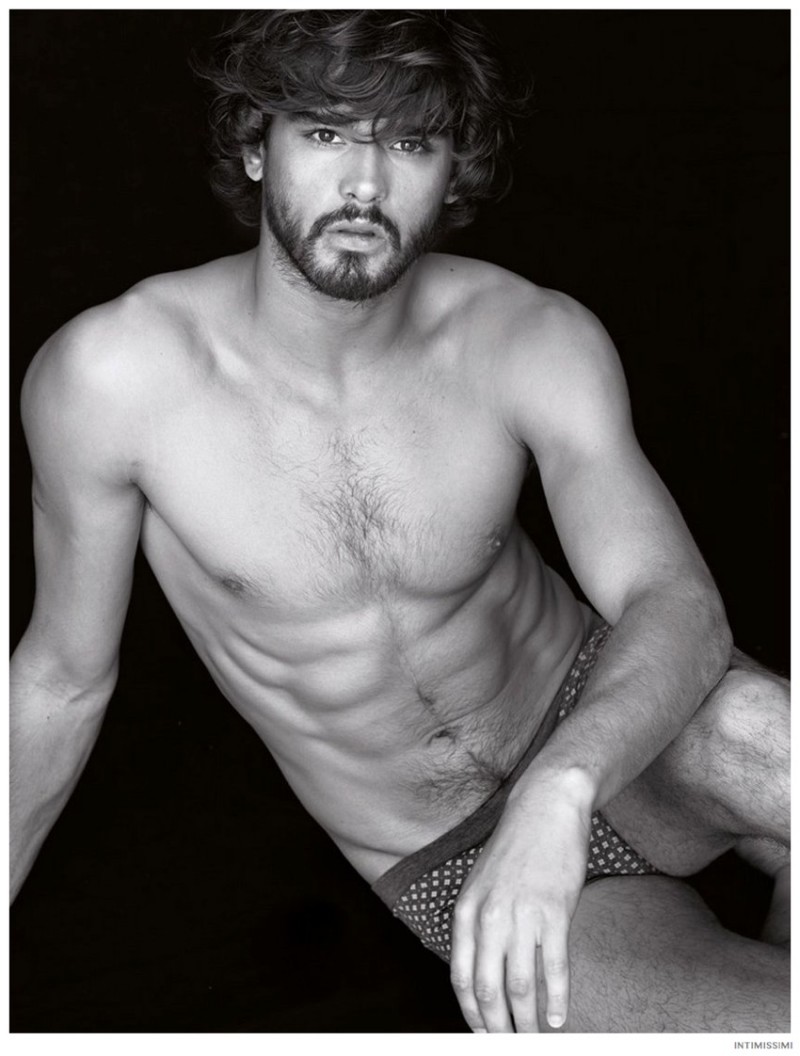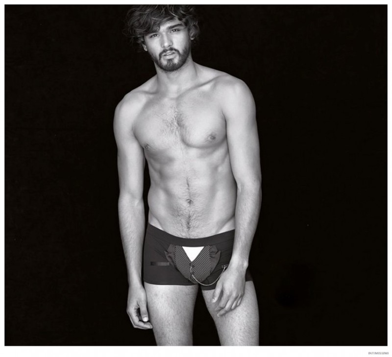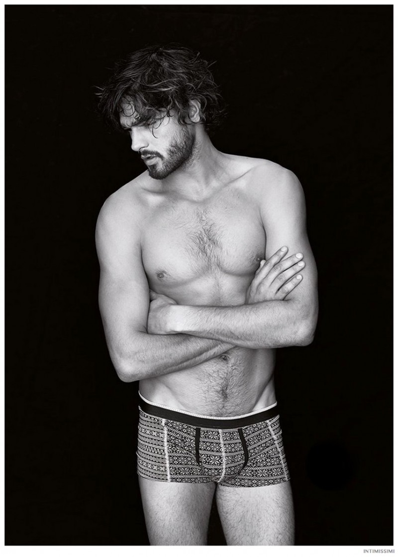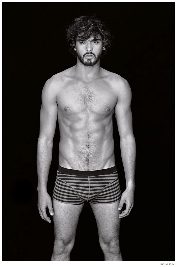 Marlon for Intimissimi-Underwear and lounge brand Intimissimi taps Brazilian model Marlon Teixeira to star in its Winter 2014 look book. Hitting the photo studio and posing against a stark black backdrop, Marlon models the label’s latest wears. From striped boxer briefs to comfortable long-sleeve shirts and lounge pants, Marlon is a relaxed vision.