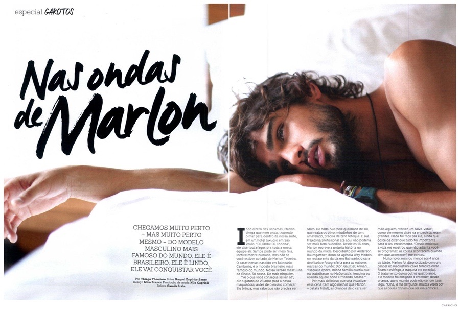 "At that time, my family wanted me to work at McDonald's. Imagine myself using that cap and making fries?" Even though how delicious imagine this scene can be (what's better than Marlon + fries?), the chances of the guy becoming anything else besides a model, "perhaps a lifesaver", as he said in the interview, were big. Nothing was easy for him, even though he prefers to say that everything was important for his development. "Since I was a kid, life showed me no matter how hard you try to schedule your life, everything is going to happen only when it's the right time", he told me. In his early years, when he turned 4, was diagnosed as having a Mediastinal tumor. The treatment lasted another 4 years and the model, since childhood was pushed to learn that life can be hard. "Look, I wondered several times why things had to be harder for me. This disease 'thing', on the bright side, made me more prepared than any other boy at my age".