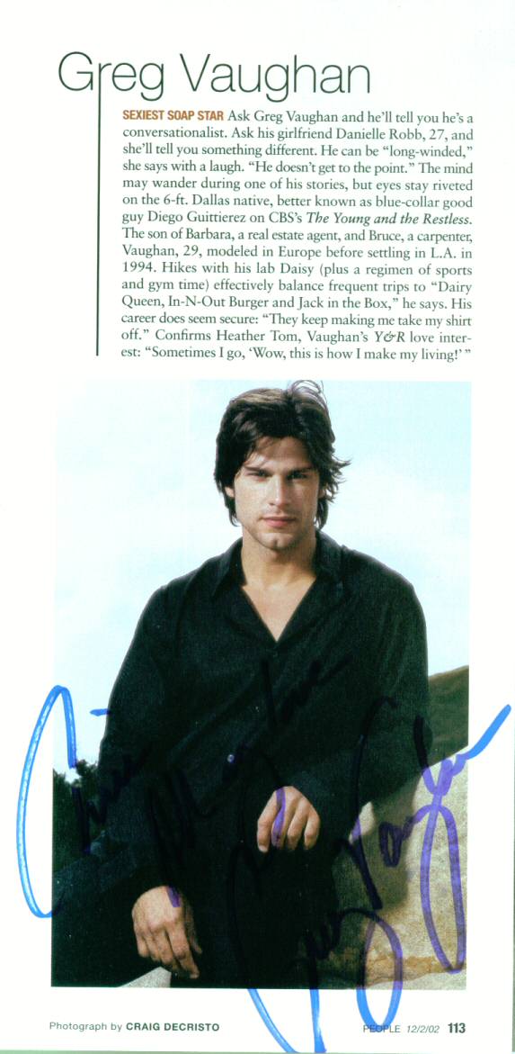 Greg Vaughan joined the cast of General Hospital in the coveted role of Lucky Spencer in February 2003. Named as one of People Magazine's Sexiest Men Alive in December 2002, Greg brings an unmistakable charm to the rich character of Lucky Spencer, son of General Hospital's famous supercouple Luke and Laura.