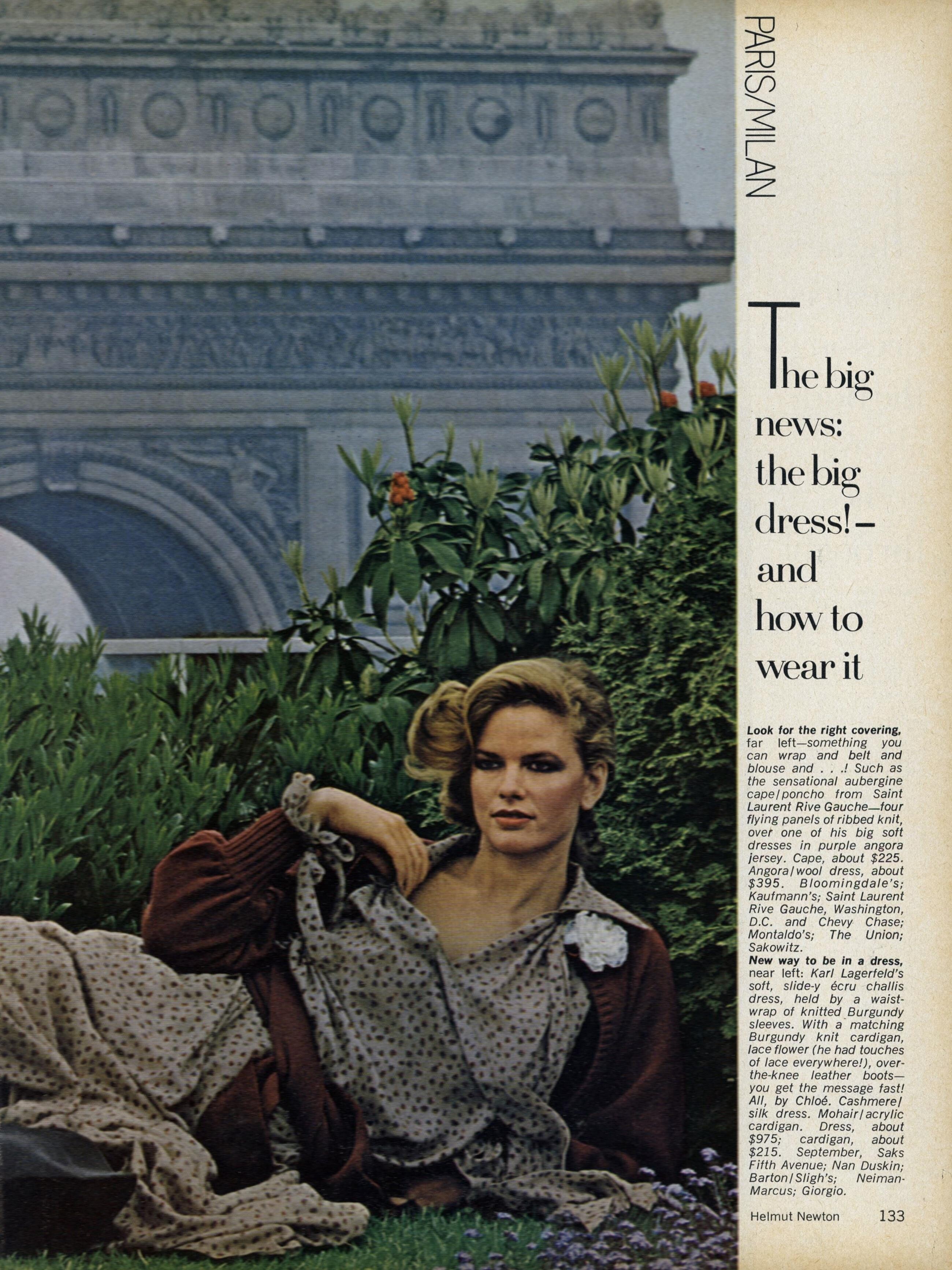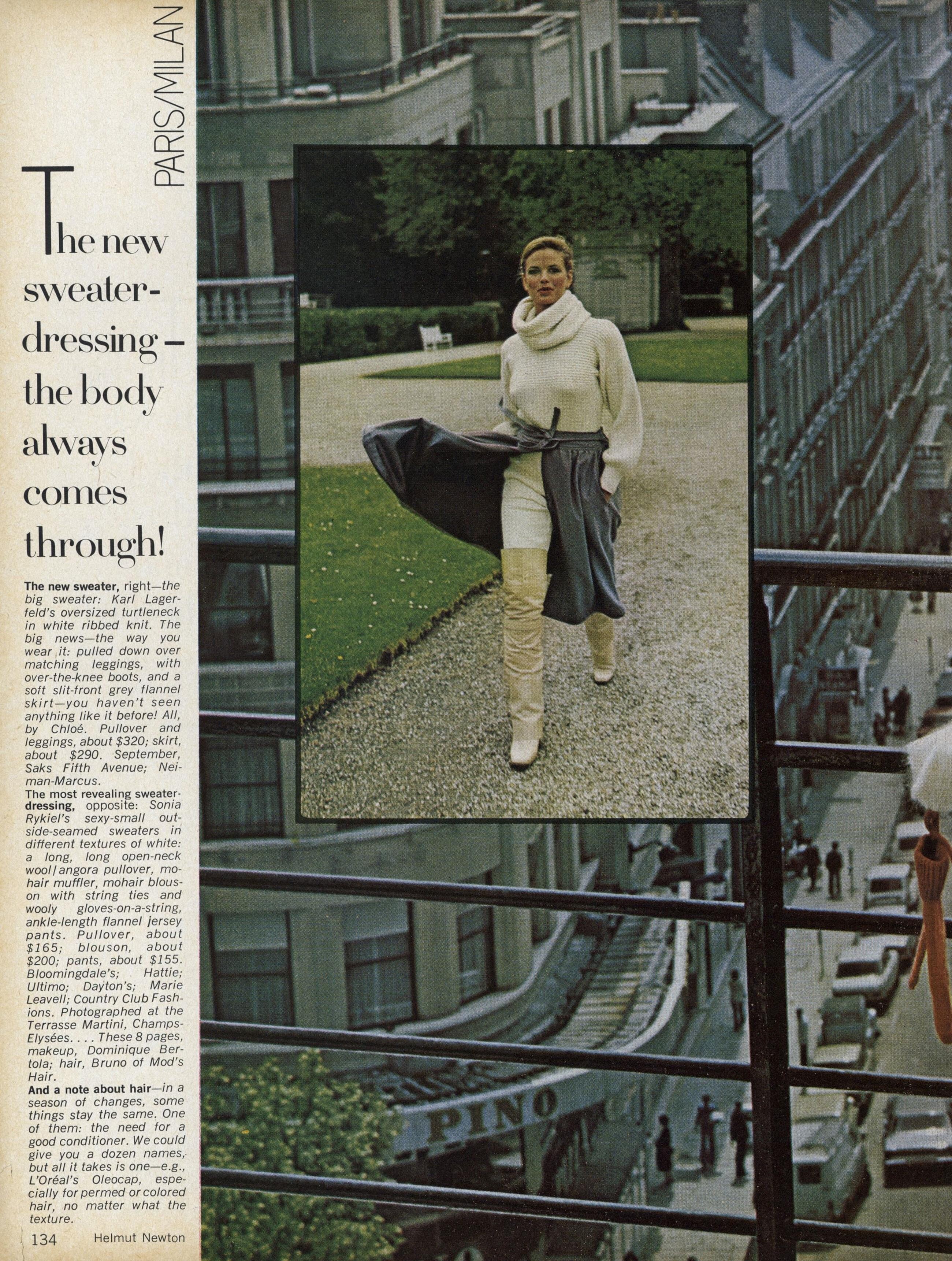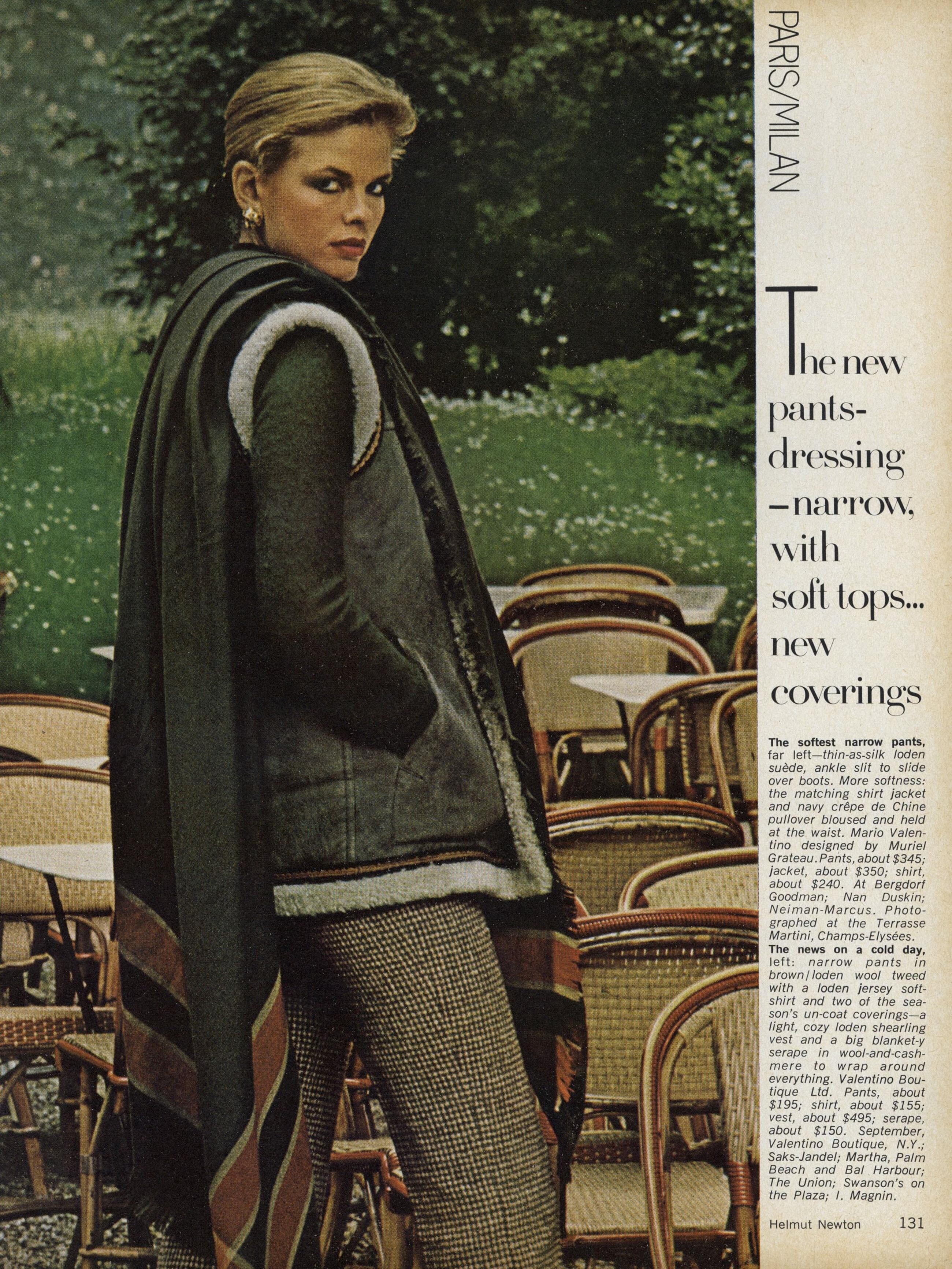 "Paris/Milan: The New Soft-Dressing" Model: Lisa Taylor Photographer: Helmut Newton Hair: Bruno