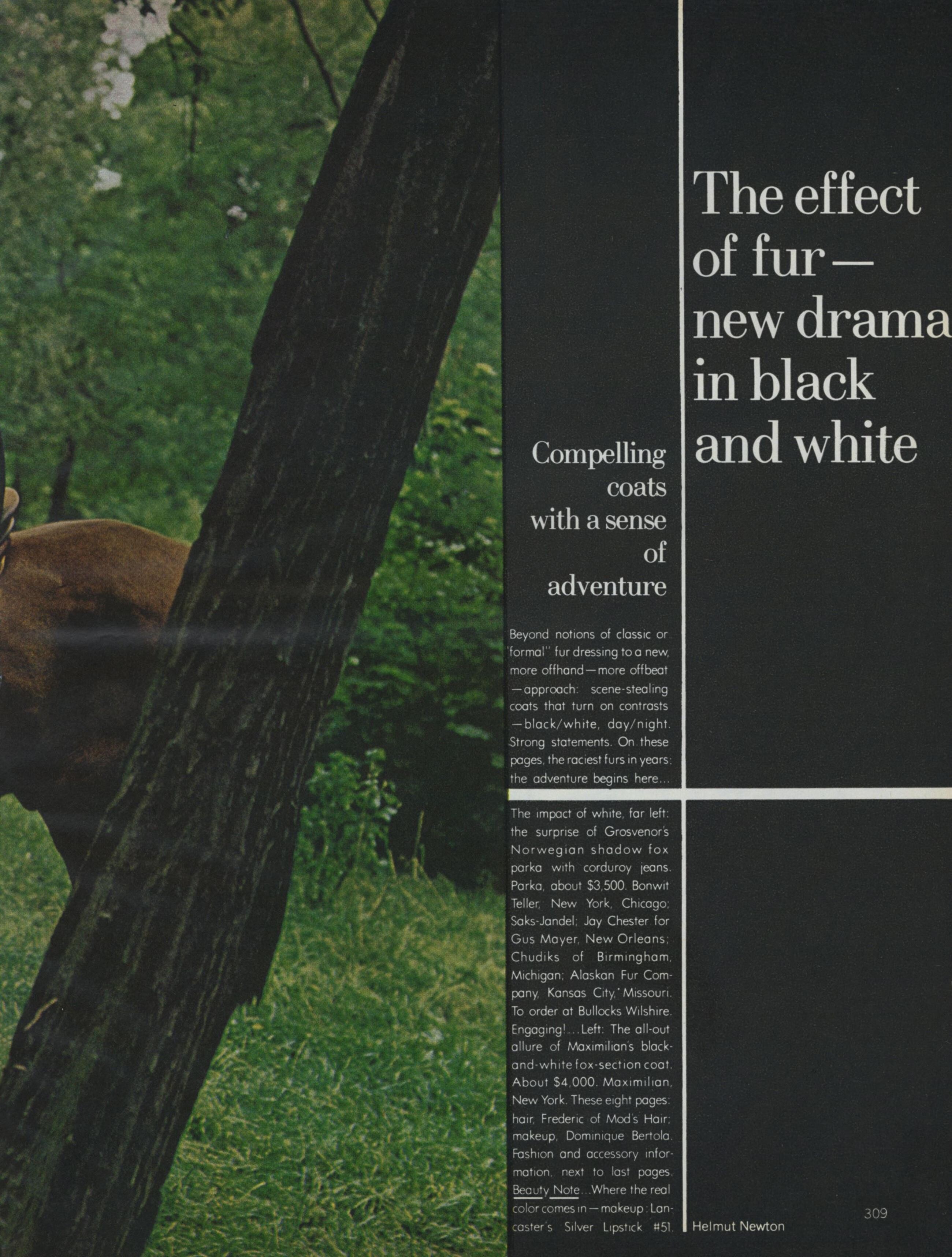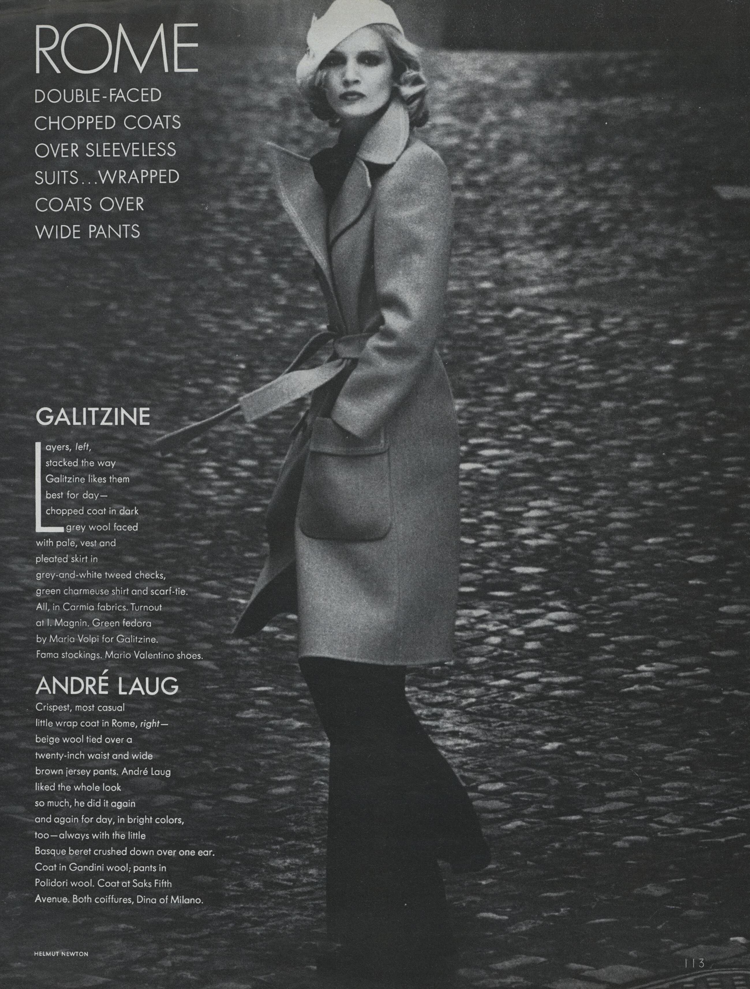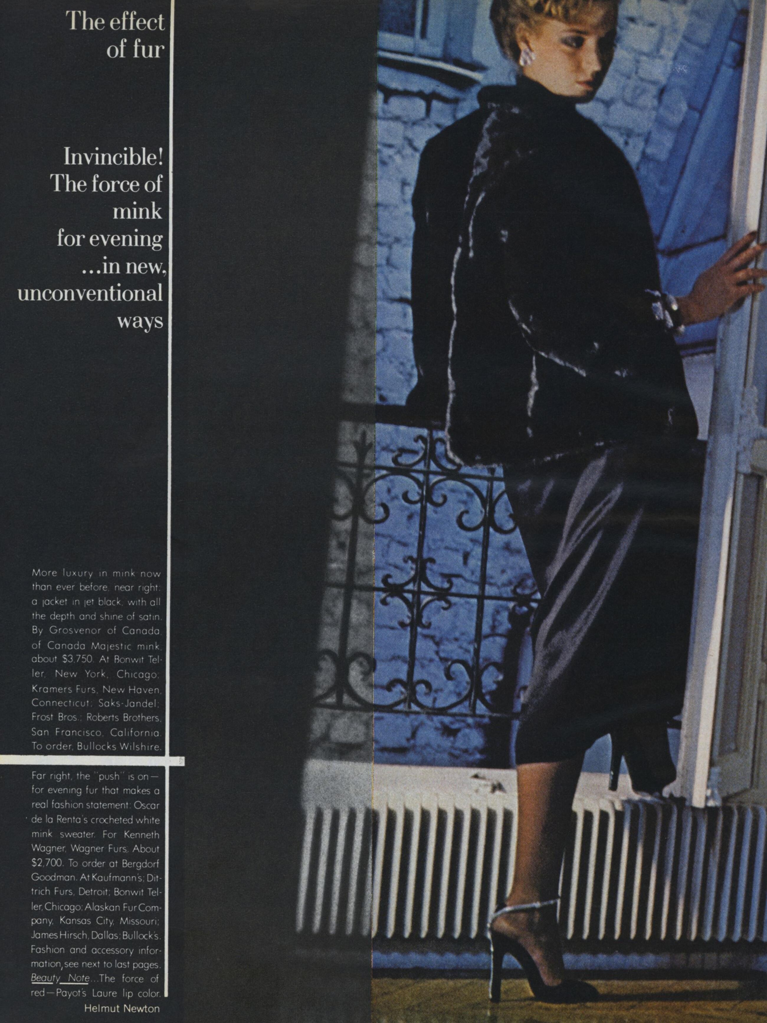 "Paris/Milan: The New Soft-Dressing" Model: Lisa Taylor Photographer: Helmut Newton Hair: Bruno