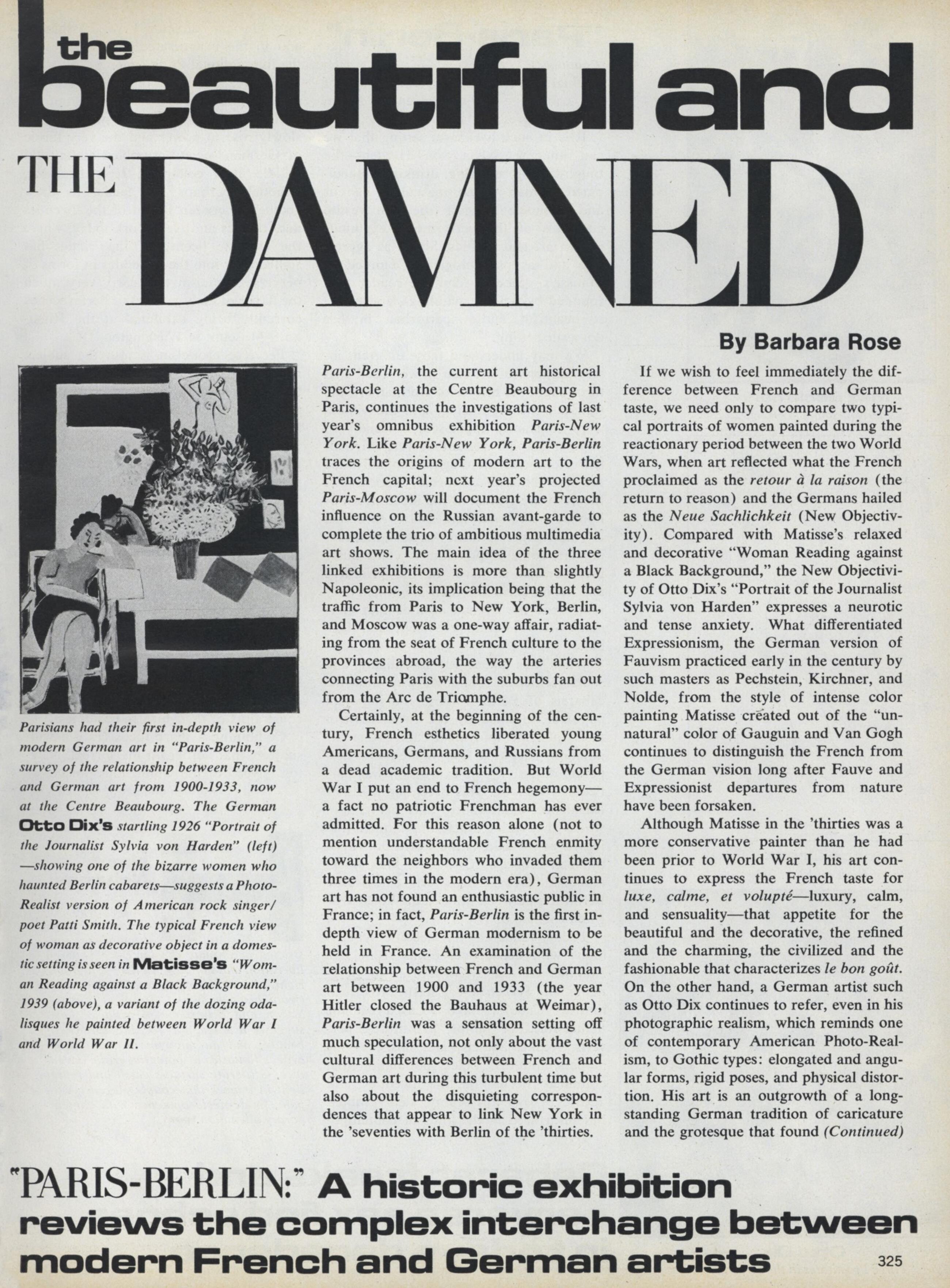 "The Beautiful and the Damned" Models: Jane Kirby, Otto Dix, Matisse, Max Beckman & George Grosz Photographer: Helmut Newton