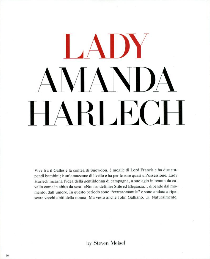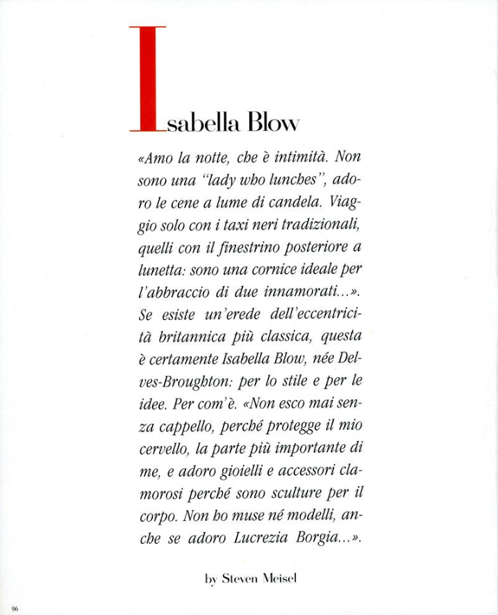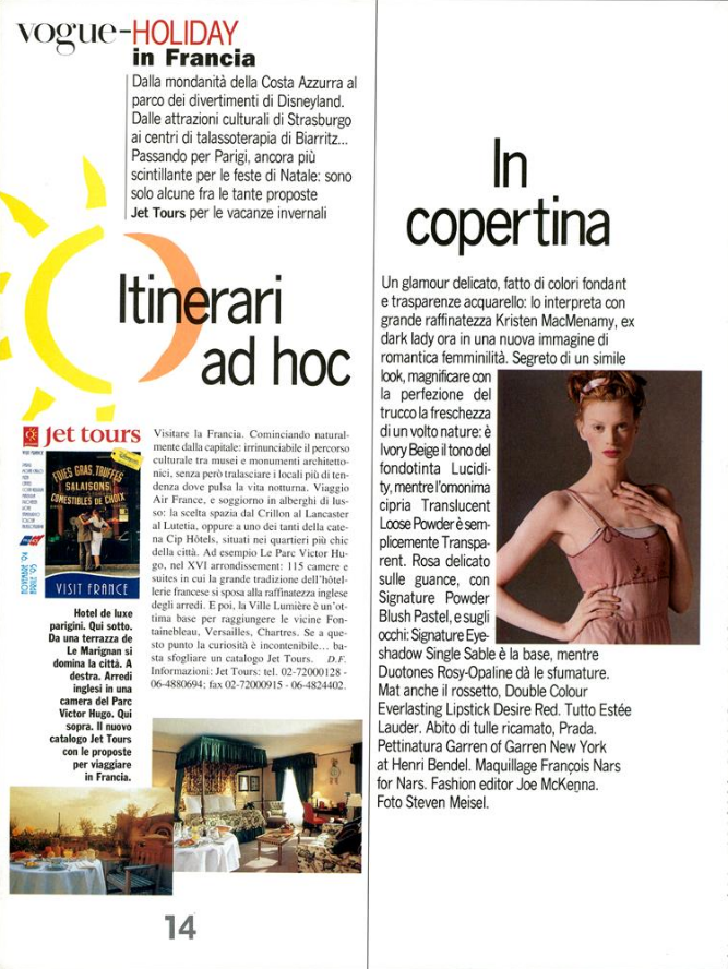 "Cosa Va di Sera" Model: Kristen McMenamy Photographer: Steven Meisel Stylist: Joe McKenna Hair: Garren Makeup: François Nars
