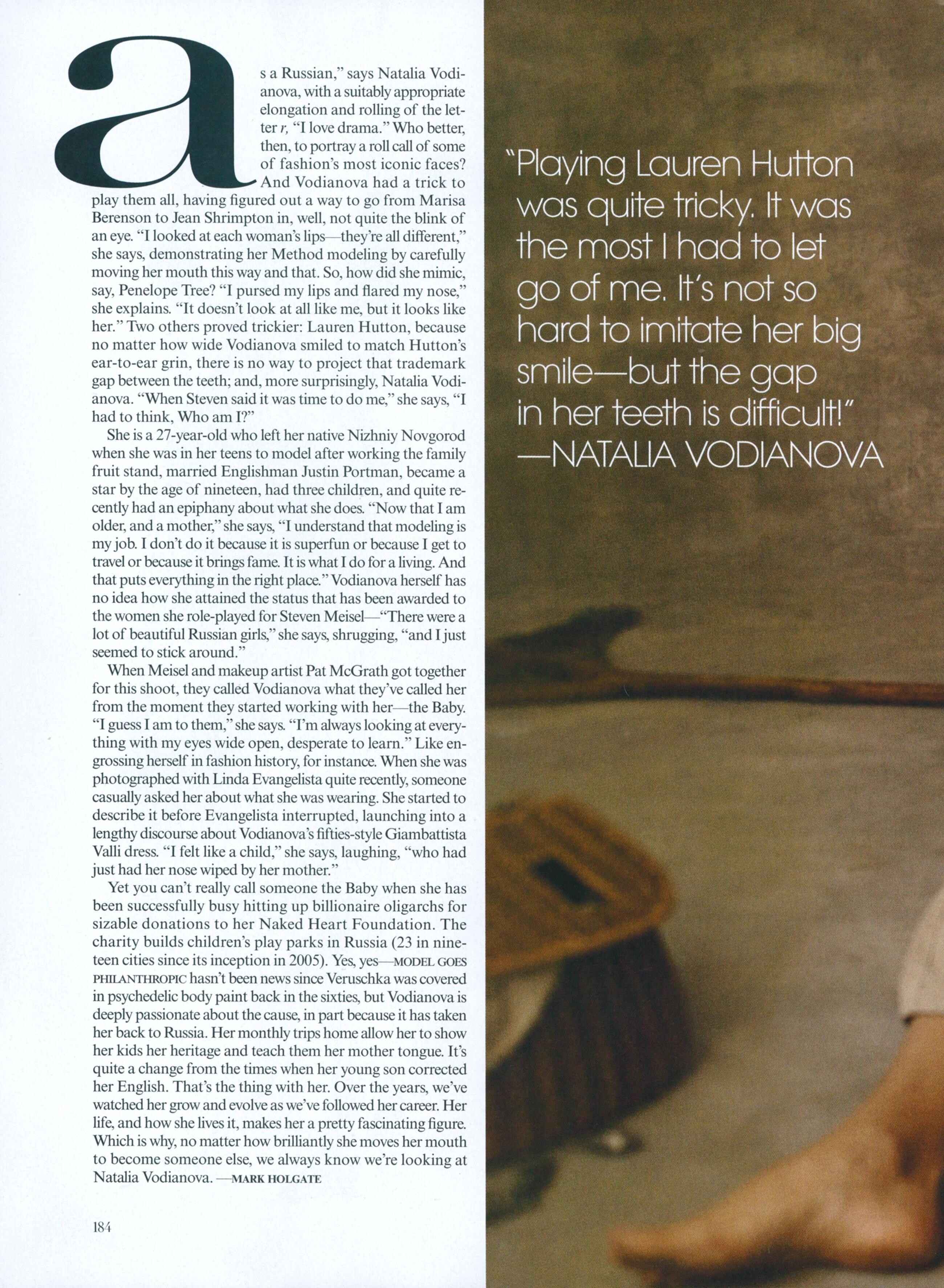 Models: Carolyn Murphy, Liya Kebede, Kristen McMenamy, Coco Rocha, Jessica Stam, Stella Tennant, Agyness Deyn, Guinevere van Seenus, Natalia Vodianova, Amber Valleta, Linda Evangelista, Gisele Bündchen, Naomi Campbell, Karen Elson, Christy Turlington, Isabeli Fontana, Natasha Poly, Caroline Trentini, Lara Stone, Sasha Pivovarova & Raquel Zimmermann