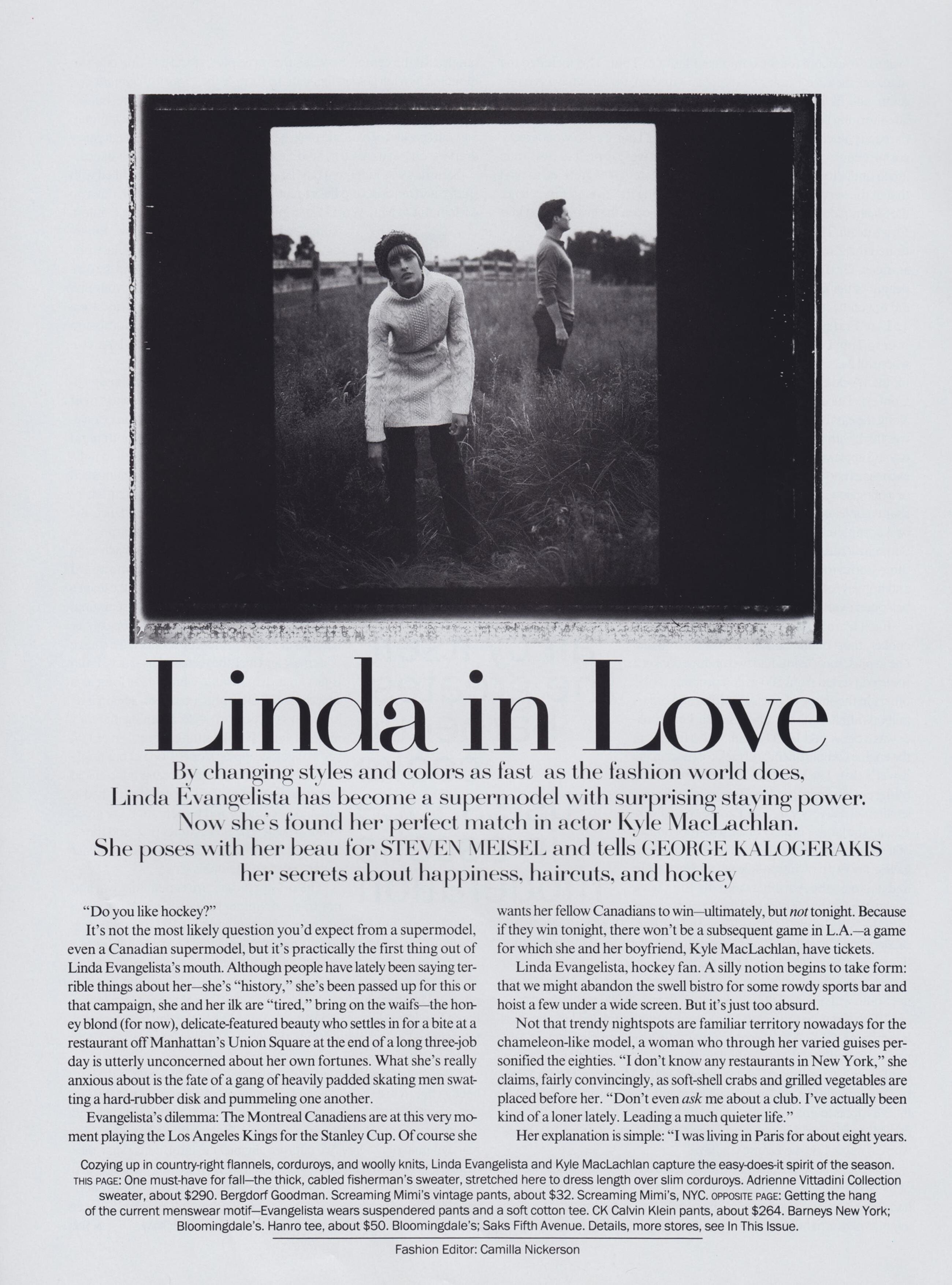 Models: Plum Sykes, Michele Hicks, Valeria Mazza, Bridget Hall, Cecilia Dean?, Lucie de la Falaise, Patti Wilson, Daniel de la Falaise, Natane Adcock, Karen Mulder, Claudia Schiffer, Rosie Vela, Jane Hitchcock, Kristen McMenamy, Patti Hansen, Donna Mitchell, Linda Evangelista, Lauren Hutton, Christy Turlington, Shalom Harlow, Stephanie Seymour, Nadja Auermann, Nadège du Bospertus, Naomi Campbell, Amber Valletta, Jenny Shimizu & Unknowns
