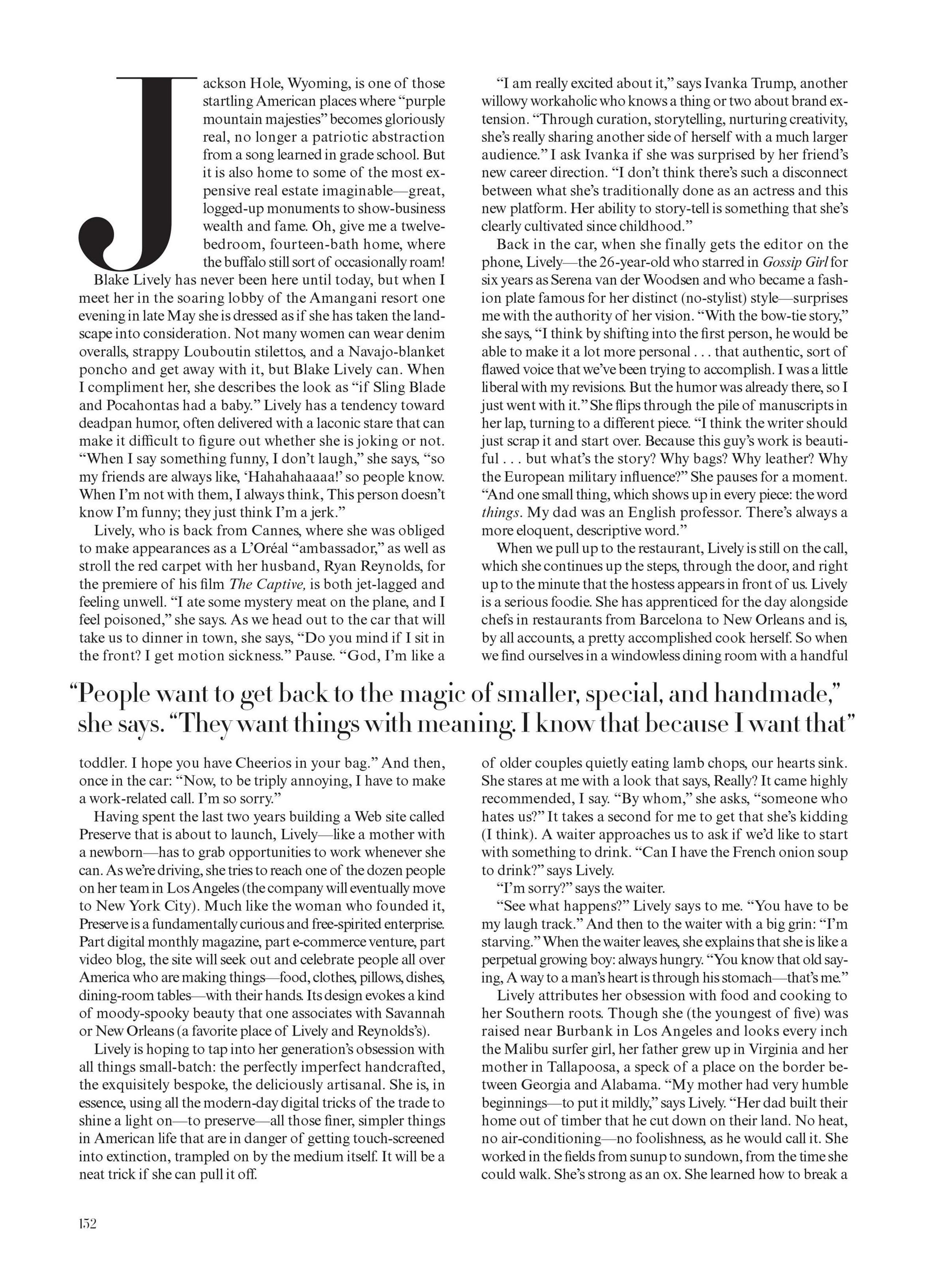 Model/Subject: Blake Lively Photographer: Mario Testino Fashion Editor: Tonne Goodman