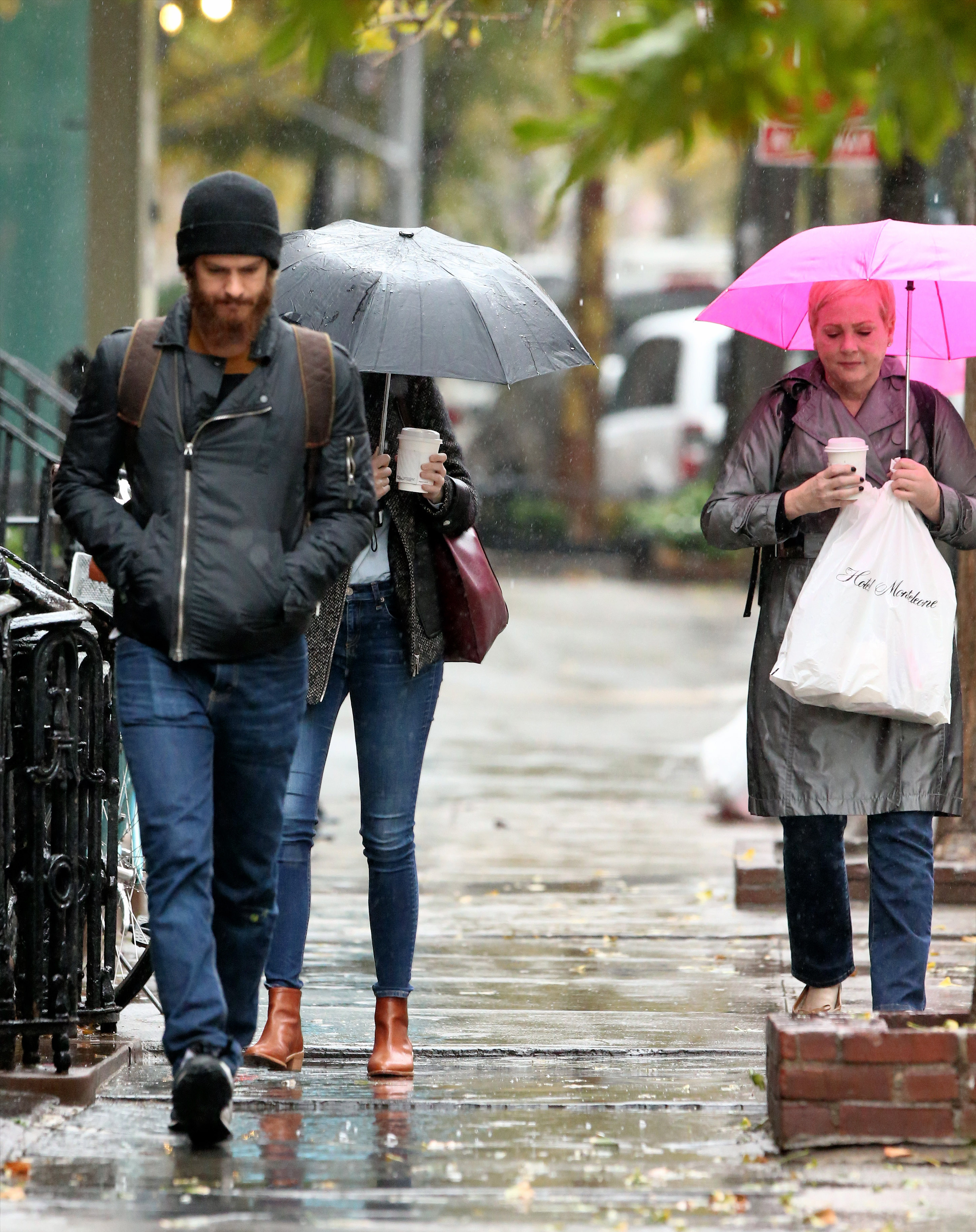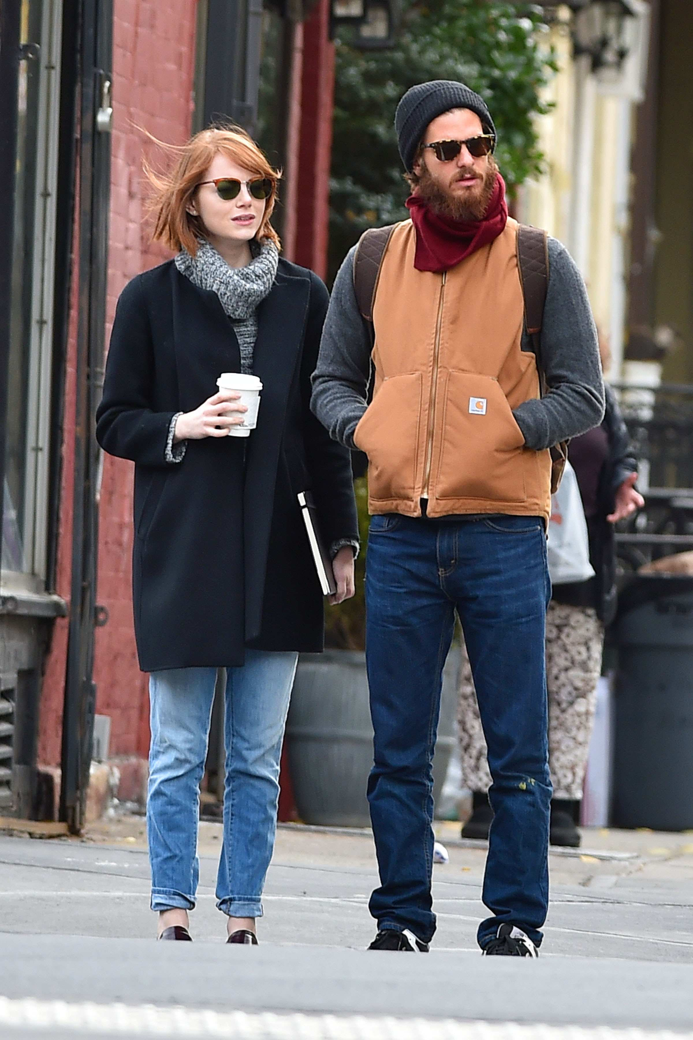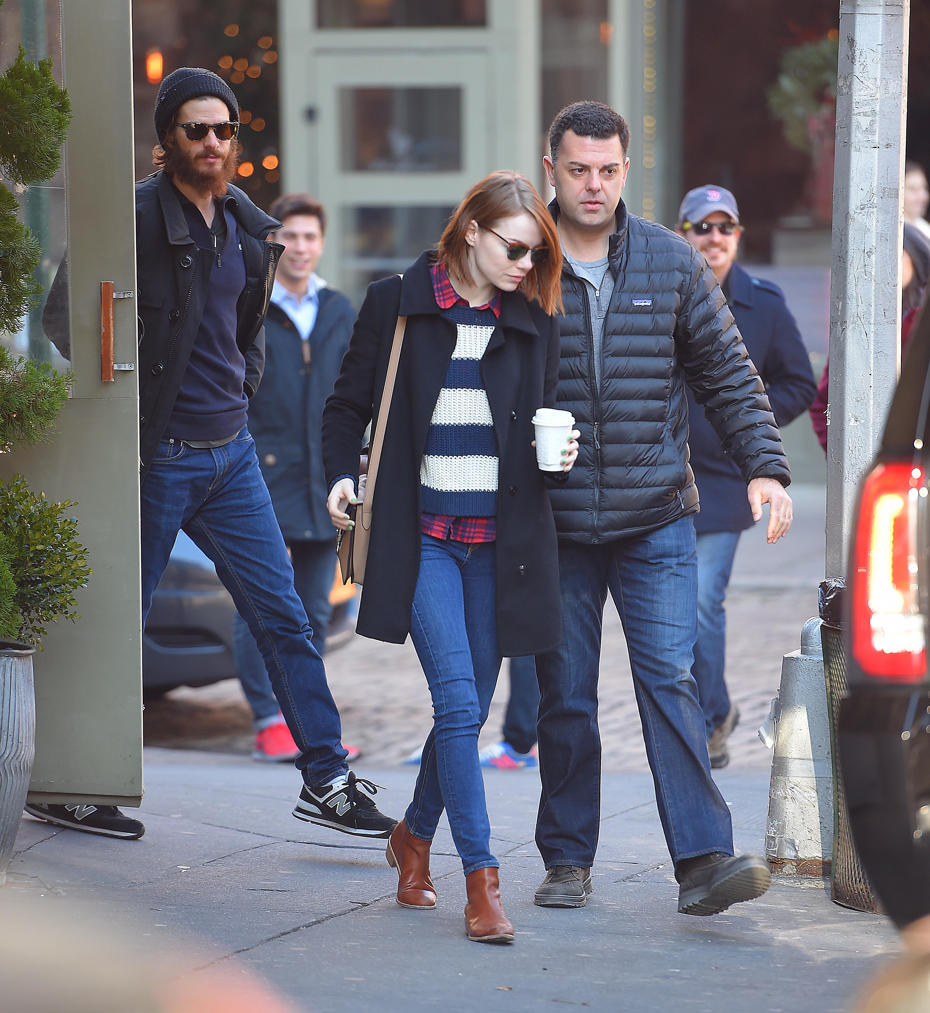 Out for breakfast with Andrew Garfield on October 31, 2014 in NYC.