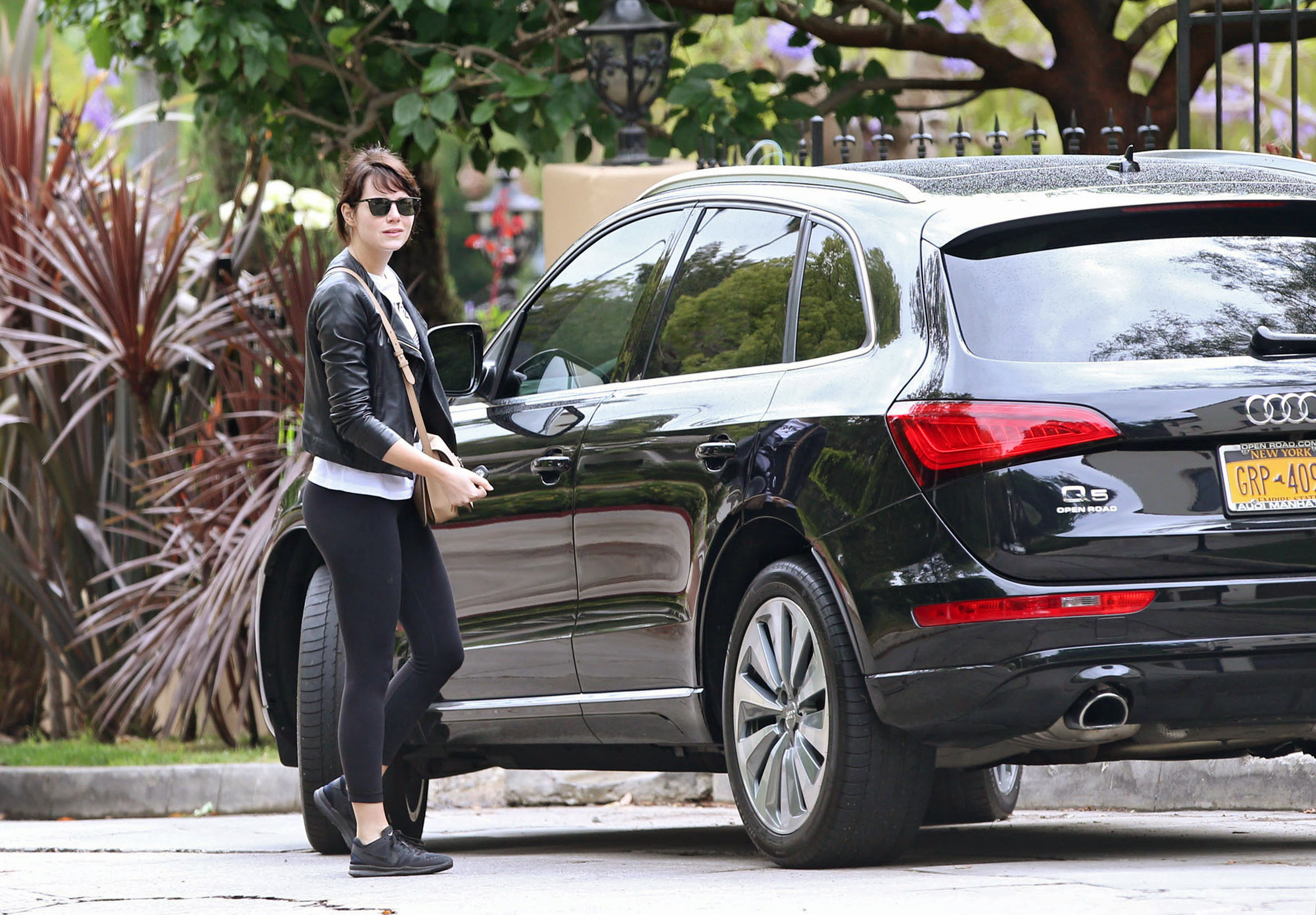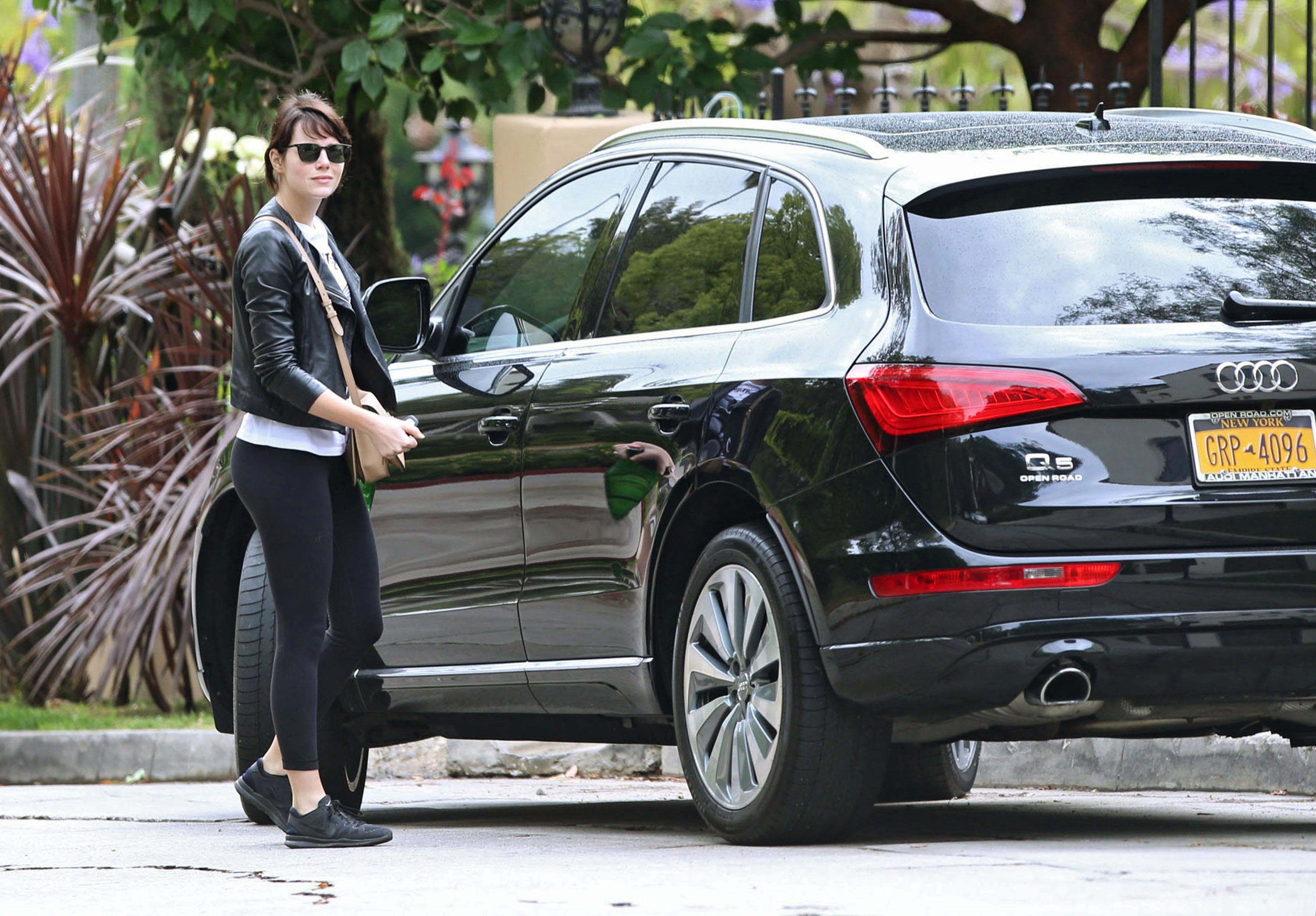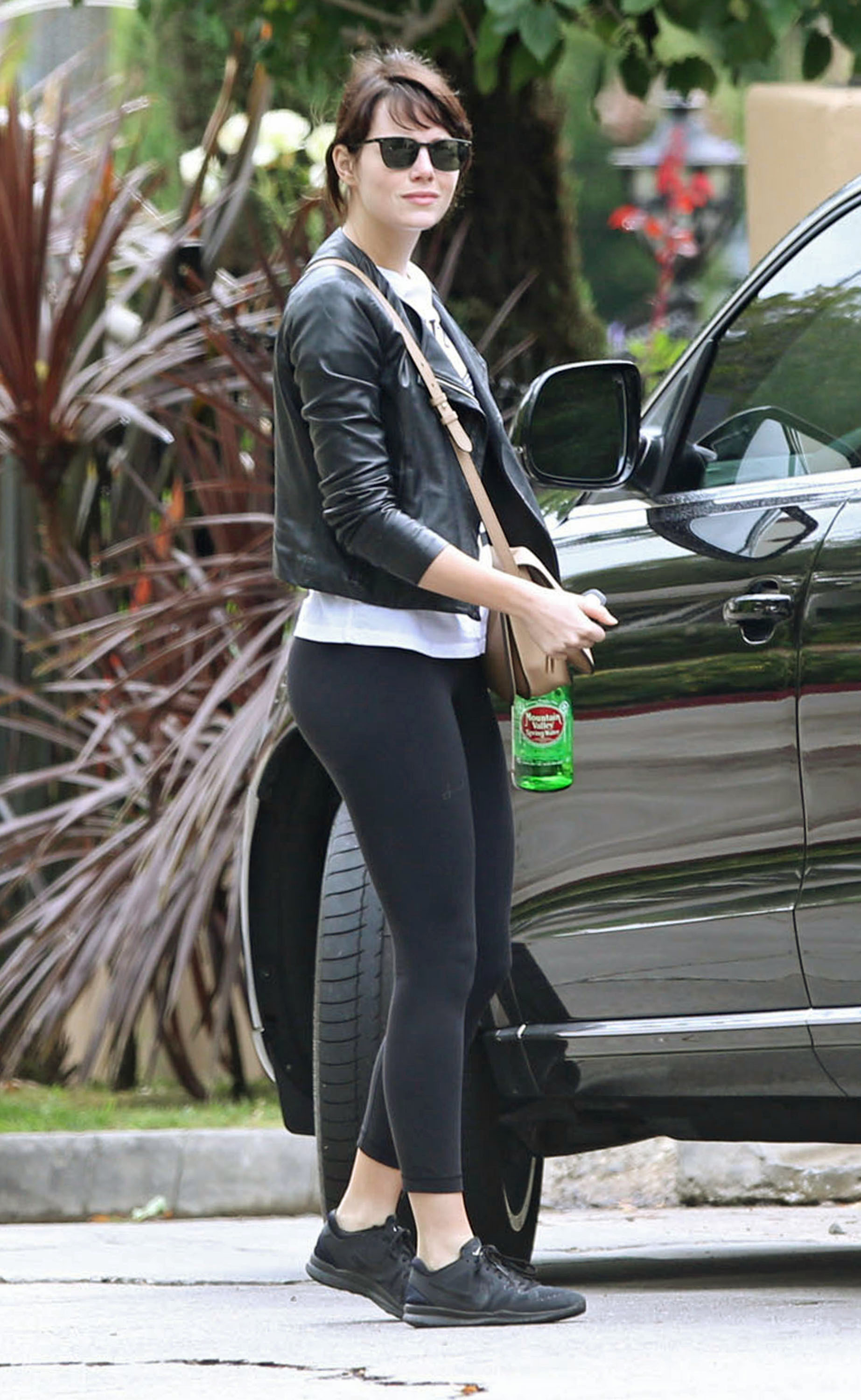 Emma Stone - Booty in Spandex at a Gas Station in Malibu - March 26, 2016
