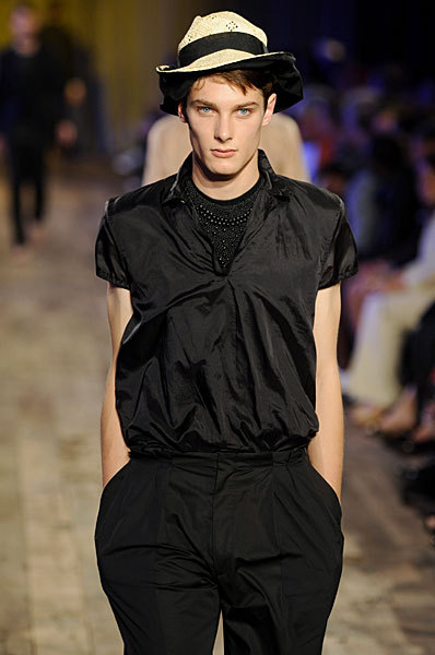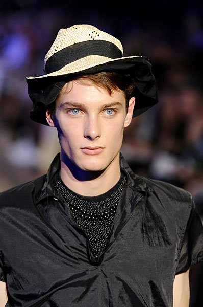 "James Hampson, recently rated model of the week on models.com, is one hot commodity right now in the fashion world. Born in Surrey, England, the 21 year old Brit was discovered this year at a music fesival. Only having been in the business for five months, James had a Prada exclusive on the runway in Milan, was in the Lanvin, Kenzo, and Armand Basi shows this summer in Paris, and just finished a photo shoot for the magzine L'Officiel. That's not all James has going on though. He's graduating with a degree in property development and wants to be a quantity surveyor. The Fashion File team first caught up with James backstage at Lanvin and we love his down to earth personality and zest for life (not to mention his big blue eyes and oh so adorable smile!) This guys is definitely one to look out for."