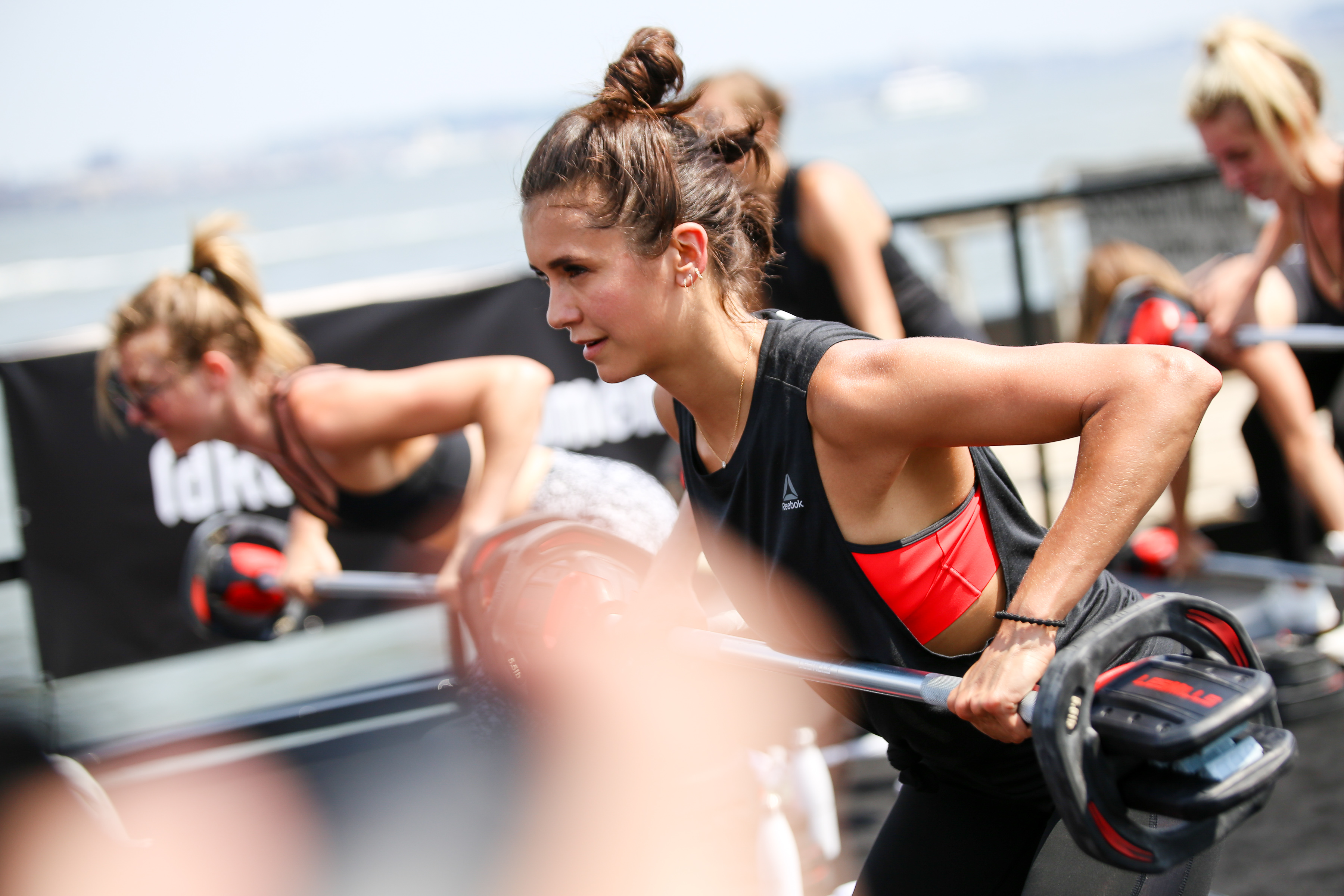 Nina Dobrev Shooting a video for the new Reebok fitness clothing line in Venice, CA 6/28/17