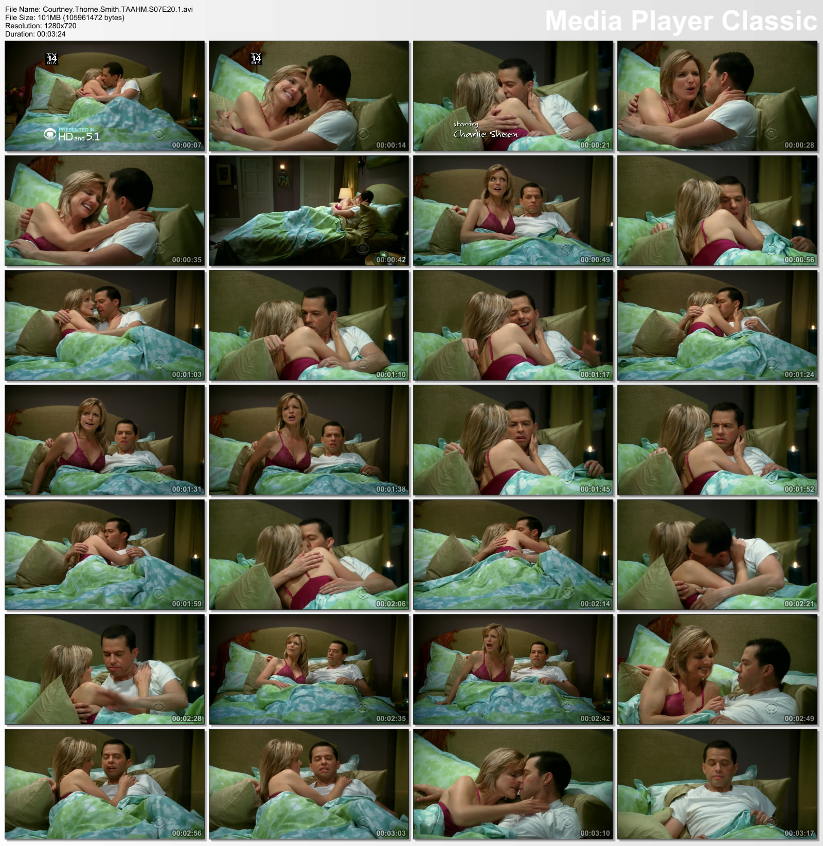 Courtney Thorne-Smith Seethrough Lingerie in Bed - Two and a Half Men S07E20 [HD]