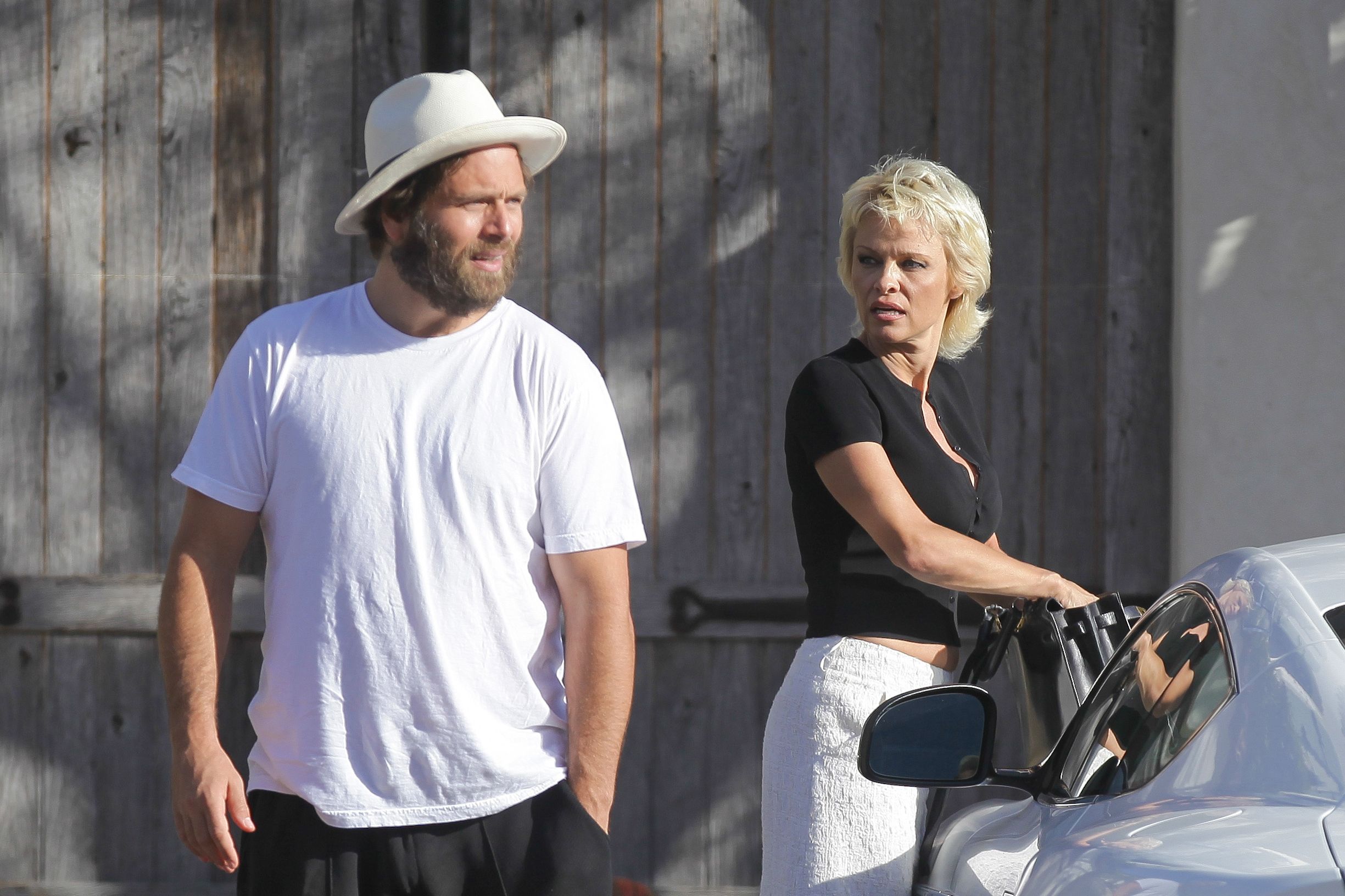 Pamela Anderson nipslip at Chateau Marmont, West Hollywood, Oct 2 - NSFW