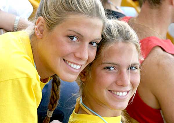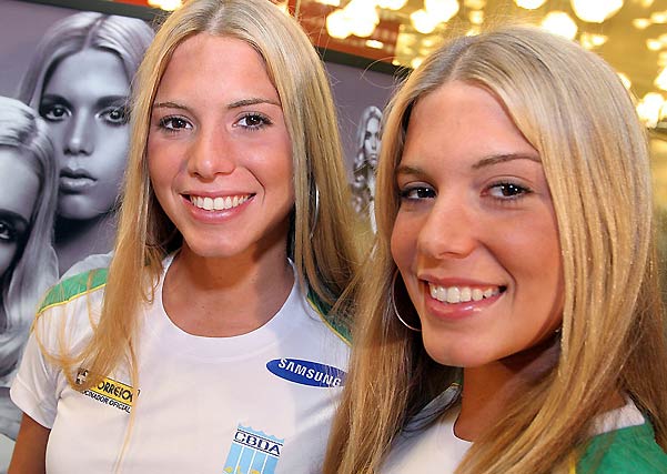 Speaking of gay... apparently the twins were on some Brazilian game-show that a site described this way: "The game show, De Cara No Muro, pitted Bia and Branca plus some tool against two other tools and another cute Brazilian chick. The goal of the show is to make your body go through holes in a wall before being pushed into a pool."