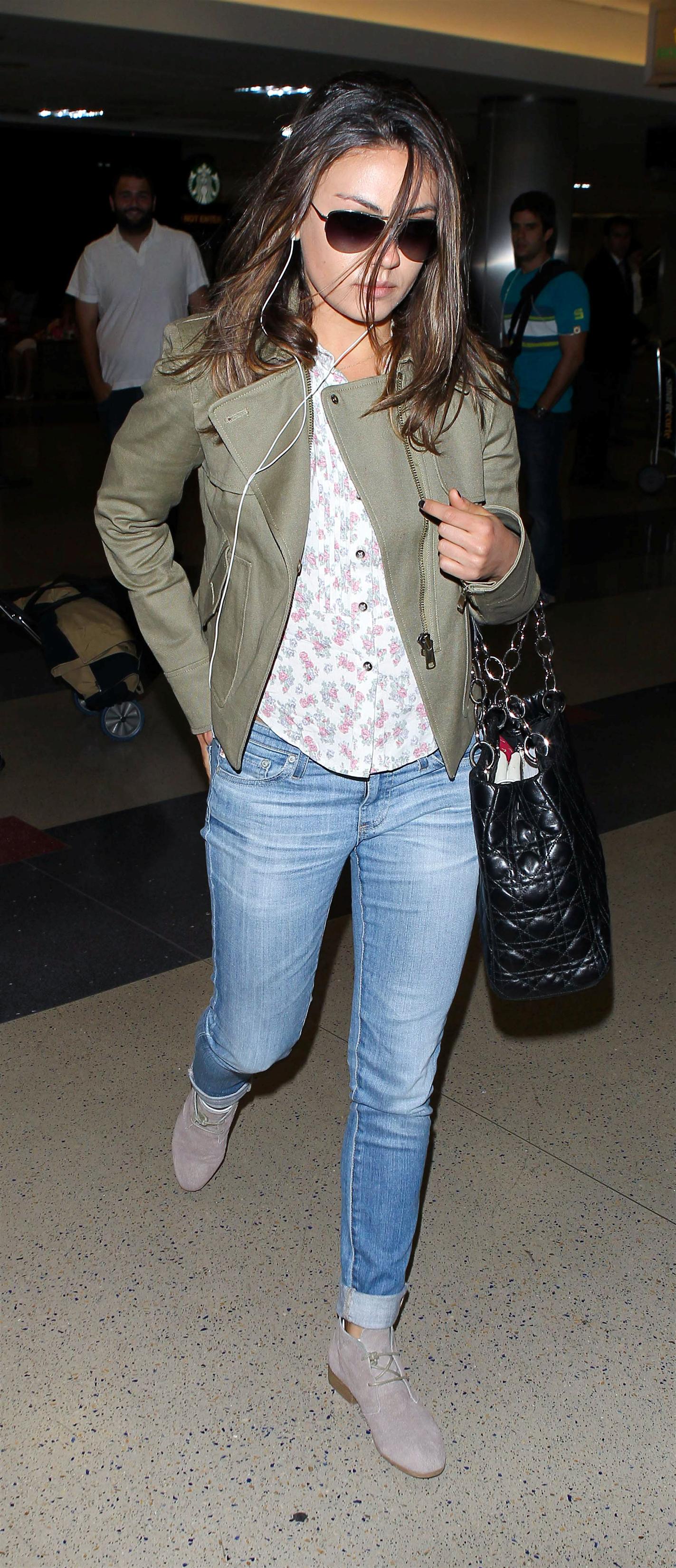 I rarely like any candid look for Mila ,but I like her sweater and shoes here