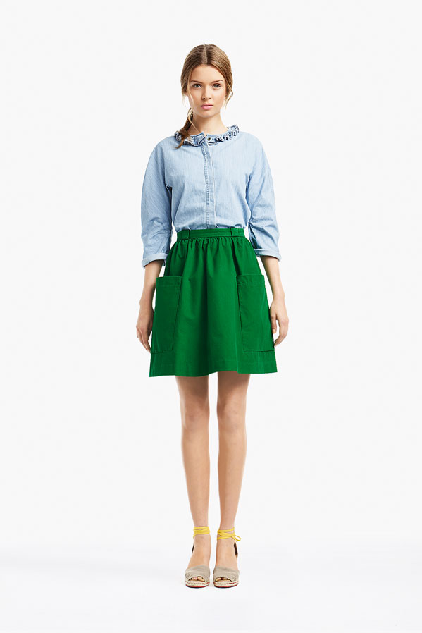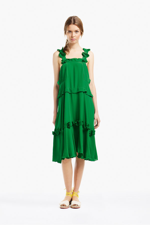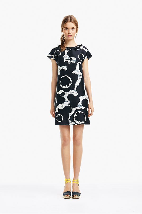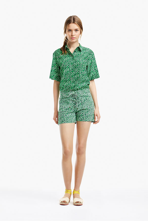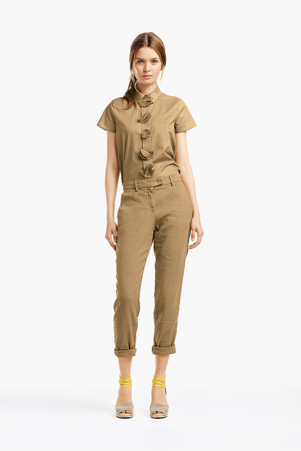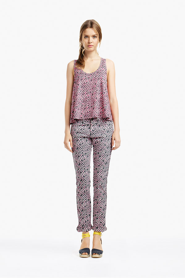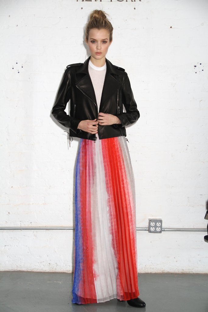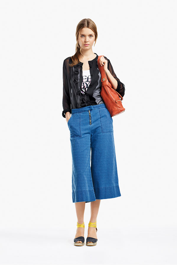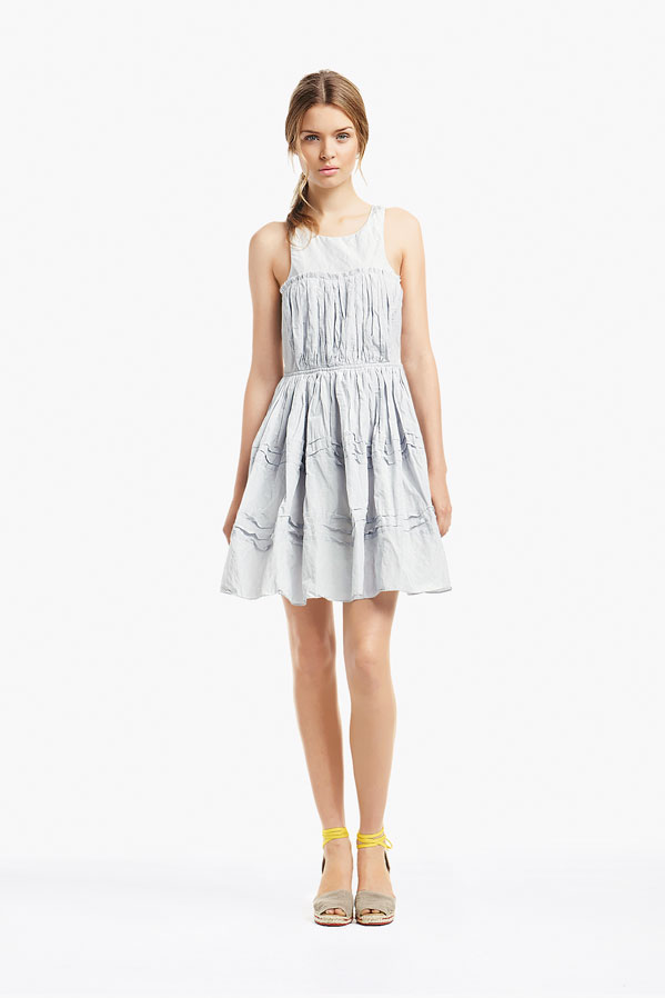 So, Josephine popped by the other day for a little bit of runway-to-reality fun. We followed Pat’s lead and kept the face fresh, focusing on glowing skin: cleansed and well-moisturized, spot-correcting with concealer as needed. I used CoverGirl’s Intense ShadowBlast in Beige Blaze as a highlighter, dabbing it across the cheekbones, under the eyebrows, on the inner corners of the eyes, down the bridge of the nose and on the Cupid’s Bow. Now for the sequins. I applied them with false eyelash glue from Duane Reade, a tweezer, and a very steady hand. The upper and lower eyelids should be dry—use a clean eye shadow brush to lightly dust the area with translucent powder first. Dot the back of the crescents with the tiniest amount of glue and place them just above (and below) the pupil, right against the lash line. The two halves should mirror each other when your eyes are closed. (This took several attempts…if you need to try again, just peel the sequin off and use makeup remover and a cotton swap to remove the glue before starting over.) Add a dab of Eight Hour Cream on the lips, a white leather le smoking by Reed Krakoff, and jewels from Repossi, and voilà: the coolest party look around.