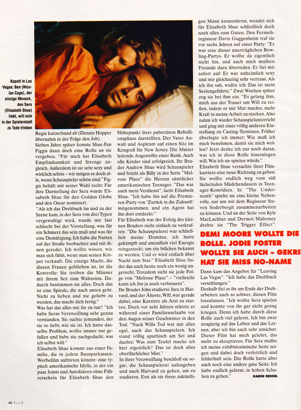 shueting star ELLE GERMANY, MAY 1996 Photographer: Matt Gunther Star: Elisabeth Shue