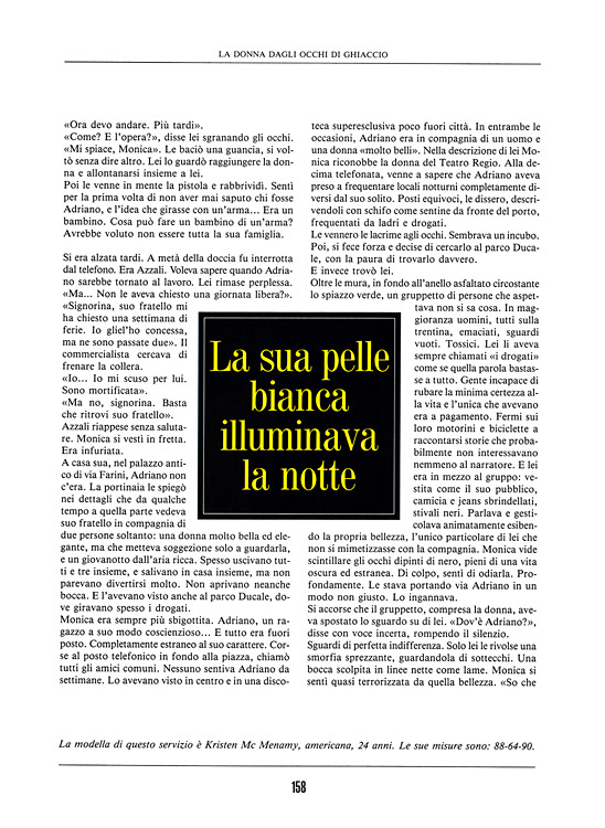 "La Donna Dagli Occhi Di Ghiaccio" (The Woman With Icy Eyes?), Myster, January 1991, issue N.4, photographs - Giovanni Gastel.