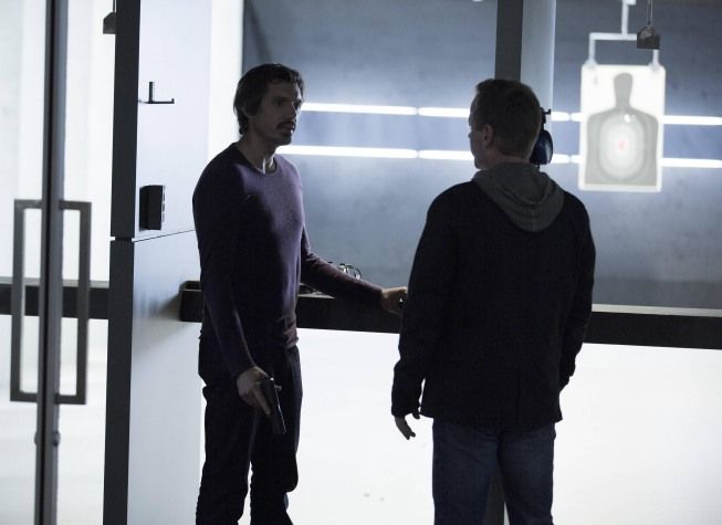He creates these algorithms that Aster Corps uses to get higher profits. They use these algorithms and all kinds of programs that they have to make the programs better. I’ve kind of come upon this special sequence, and I think it’s too important for Aster Corps to own, so I want to continue my work, but I want to do it without Aster Corps. They have kind of a shady way of doing things, and my character doesn’t really see eye-to-eye with them anymore, so he wants out. He wants to get out of his contract and continue his work on his own. Of course, Aster Corps doesn’t want to let that happen. Kiefer’s character finds out that I’m disillusioned with the company. He of course hates Aster Corps because they’re trying to get at his son. He’s trying to protect his son, so he basically wants to take down Aster Corps, and when he finds out that I’m disillusioned with the company but held a high position there, he wants to basically team up with me in the hopes of bringing Aster Corps down. That’s kind of the set-up.