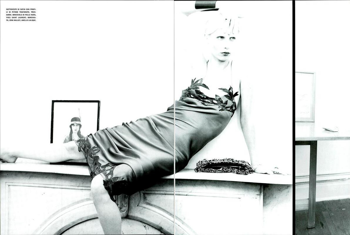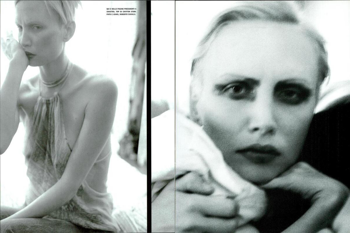 Issue: Harper's Bazaar February 2002 Story: New Shapes Photographed by Craig McDean Stylist: Brana Wolf Makeup: Pat McGrath Hair: Eugene Souleiman