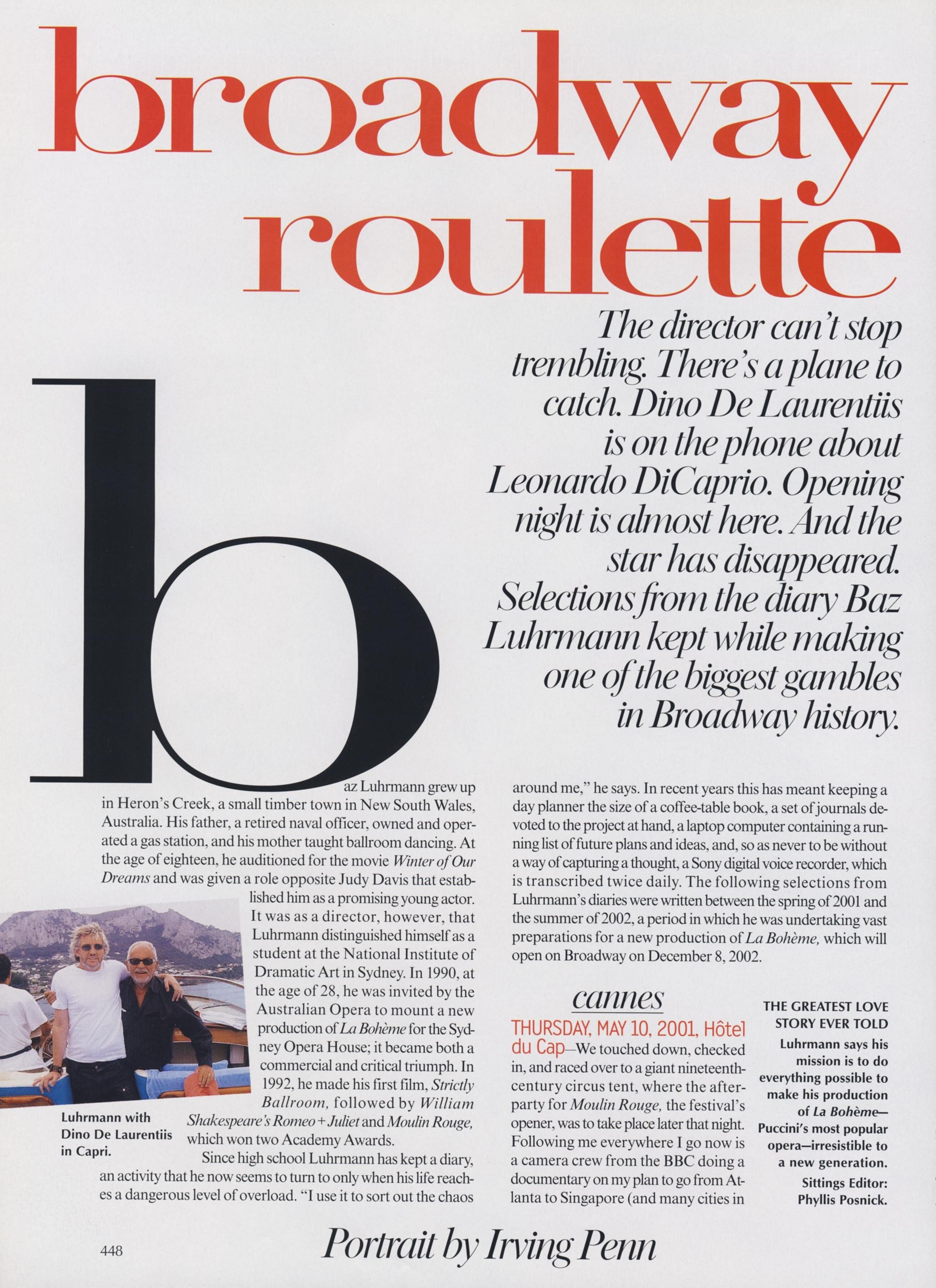 Models/Subjects: Baz Luhrmann, Jessica Comeau, Ekaterina Solovyeva, Daniel Miller, Lisa Hopkins, Jesús García, Alfred Boe, Wei Huang & Chloe Wright
