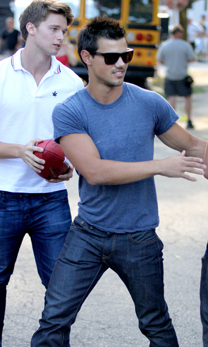 Taylor Lautner and Patrick Schwarzenegger have become quite close after working together on the upcoming movie “Grown Ups 2.” Friends of the duo claim that they’ve been spending time more and more together — playing football, watching movies, and working out.
