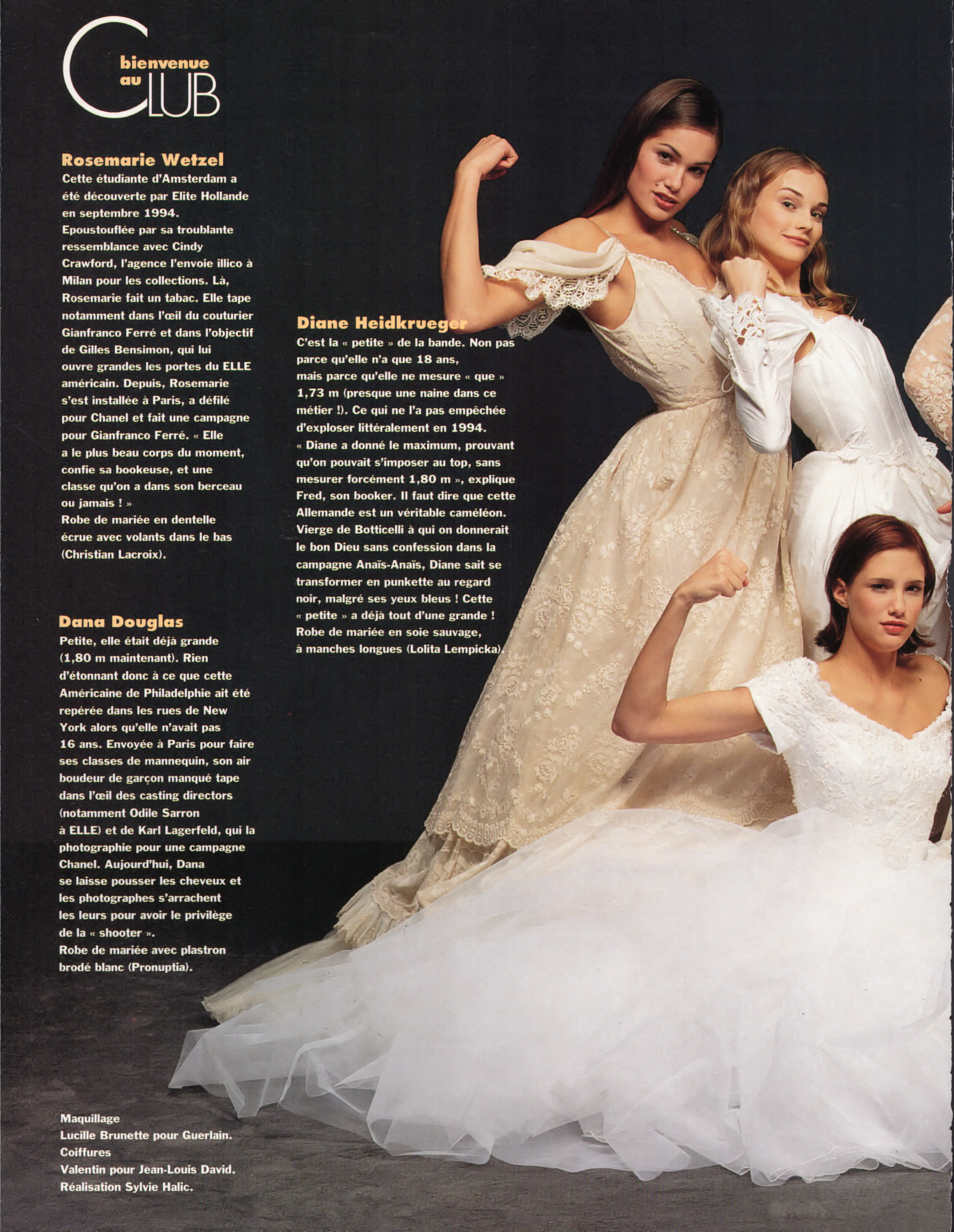 "bienvenue au CLUB" - ELLE France 27. February 1995 by Jean-Marie Perier - also showing Anika Friebe, Rosemarie Wetzel, Terra Mackinnon, Ines Rivero, Diane Kruger