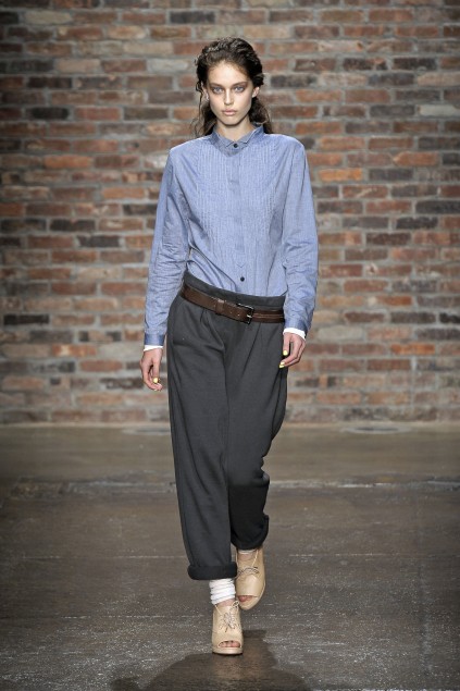 Another thing, we've been commenting on her lack of a chest. I honestly don't think she's lost her chest, (which was never huge to begin with) but I honestly, judging by the pictures think that may be a breast band, which flattens the chest. The Rag & Bone show for the most part, the models all looked fairly adrogynous, and let's face it boobs are a tell tale feminine sign. So flatten that a bit, and throw on a shirt with a more stylized mens cut, and you're good to go.