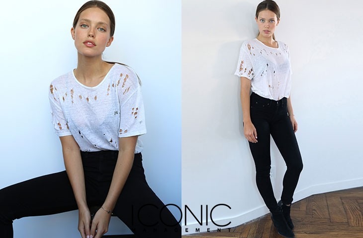 Emily DiDonato on set of Maybelline.