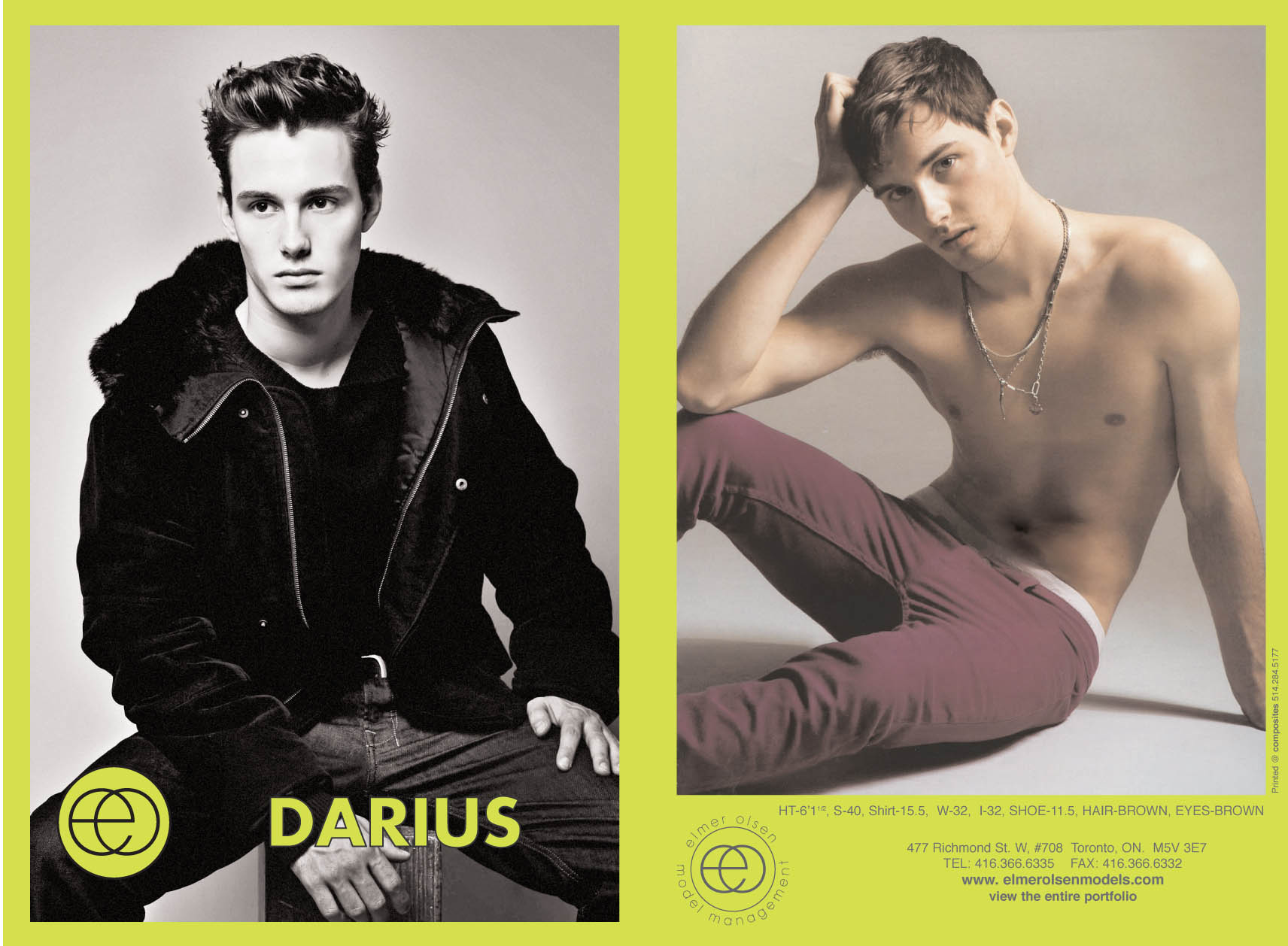 Agencies: DNA (NY), IMG, Future Model Management (Milan), View Management, Elmer Olsen Model Management (Ontario)