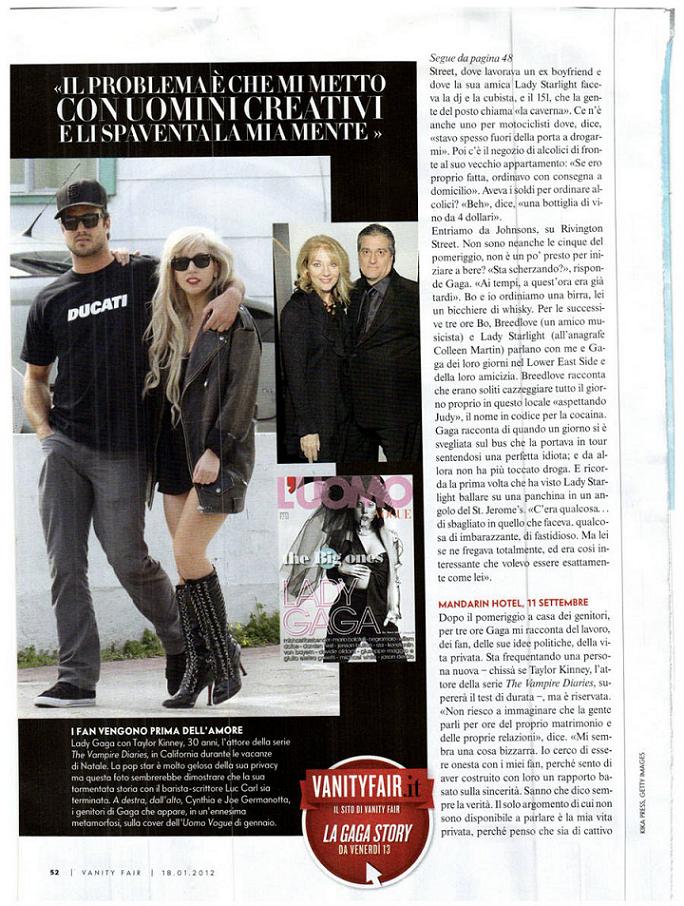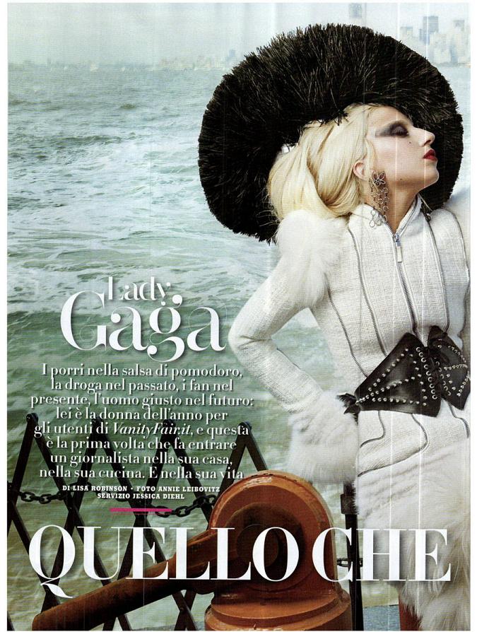 American singer Lady Gaga photographed by Annie Leibovitz for the cover shoot of the showbiz magazine Vanity Fair Italy for the January 2012 issue.