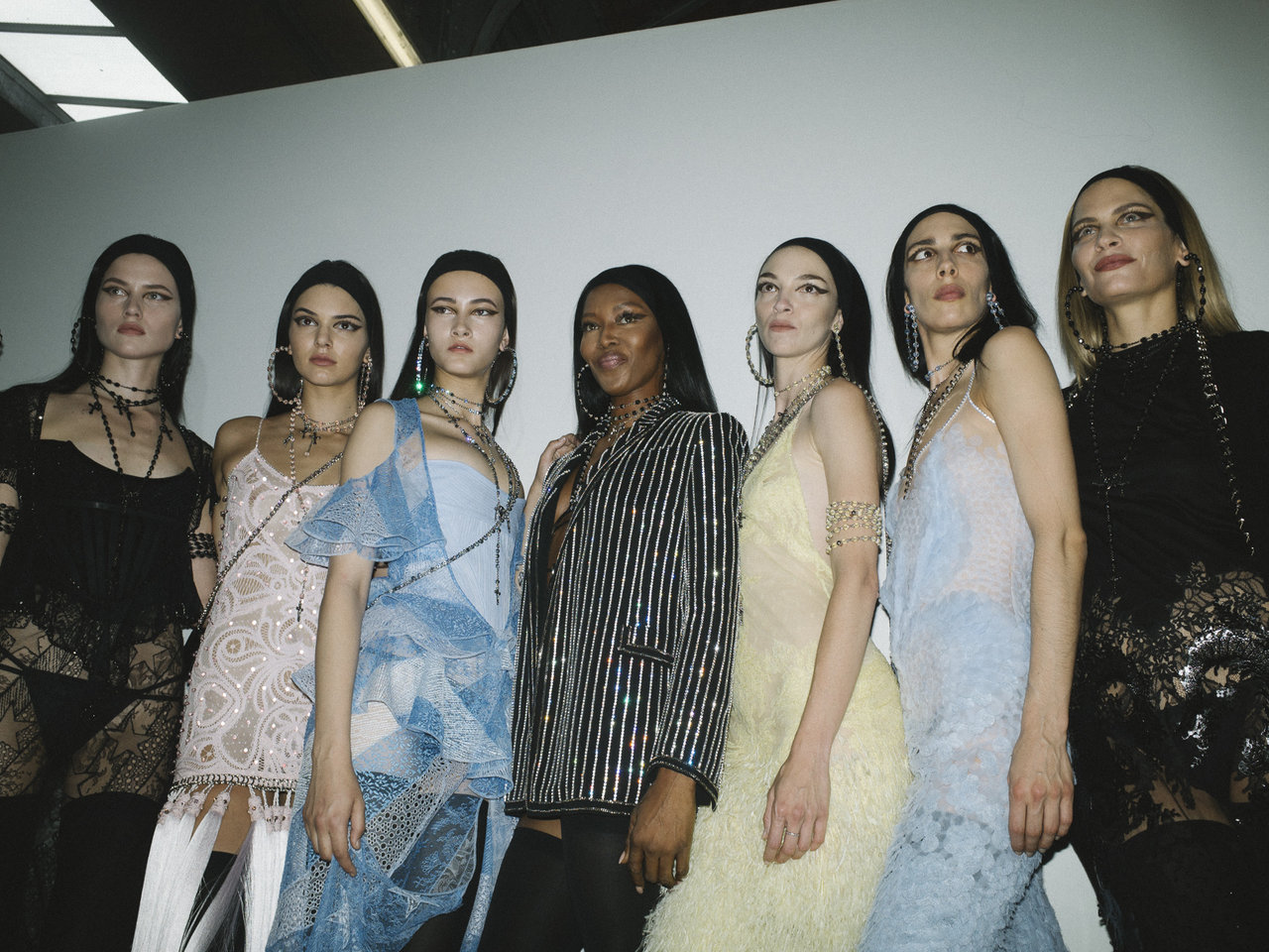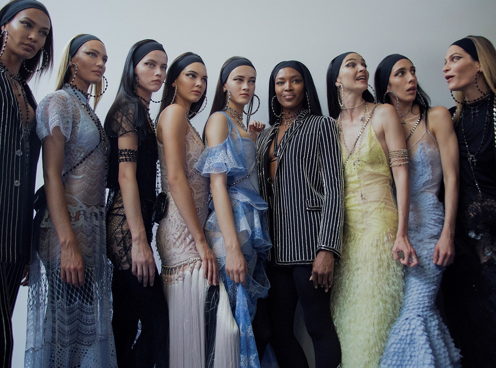 Christy Turlington, Stephanie Seymour, Naomi Campbell, Claudia Schiffer, Linda Evangelista & Helena Christensen, Gianni Versace finale fall/winter 1994/95