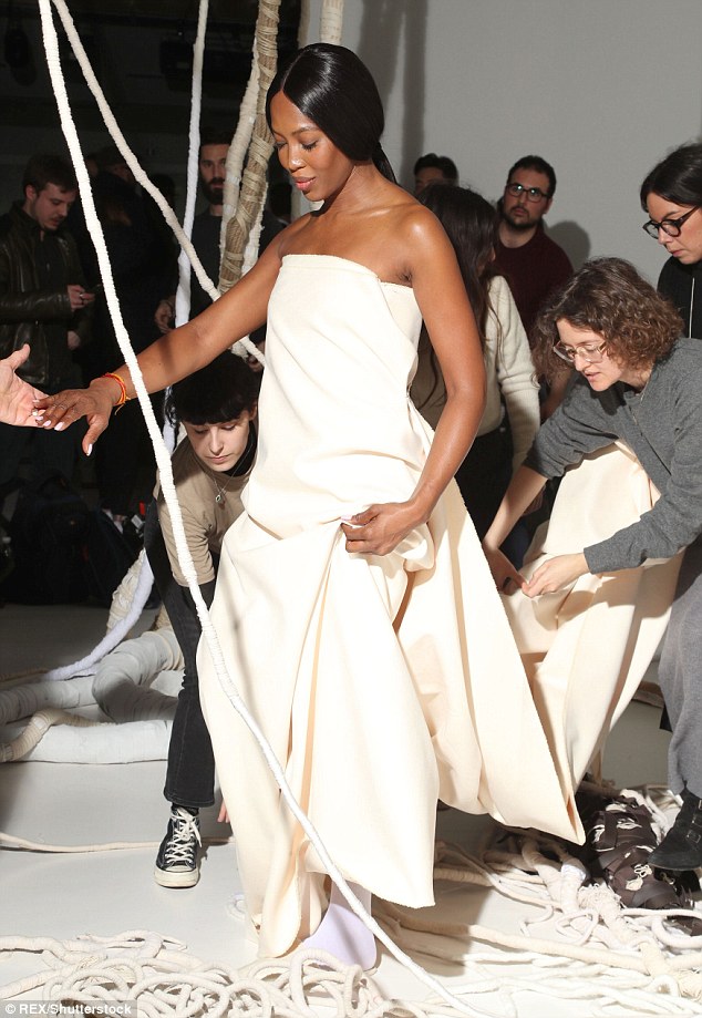 Naomi Campbell walks the runway during La Perla Fall/Winter 2017 RTW Show at SIR Stage 37 on February 9, 2017 in New York City.