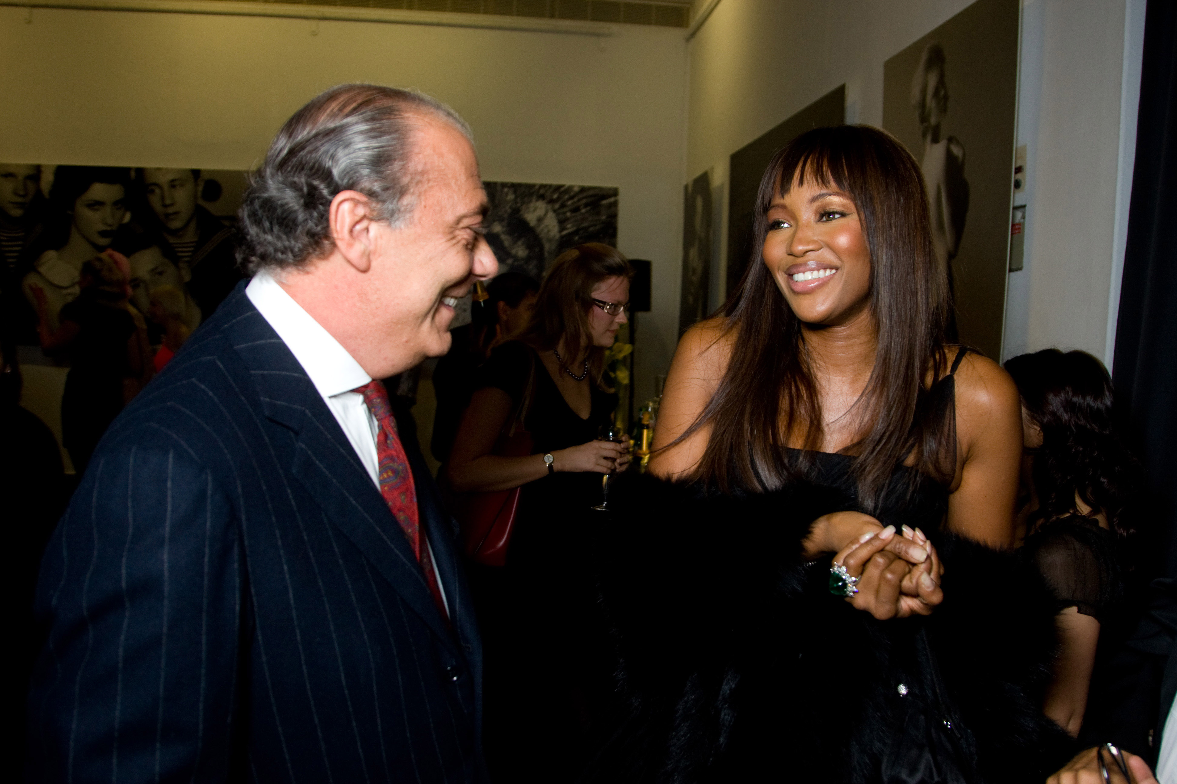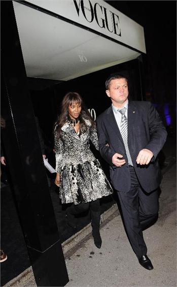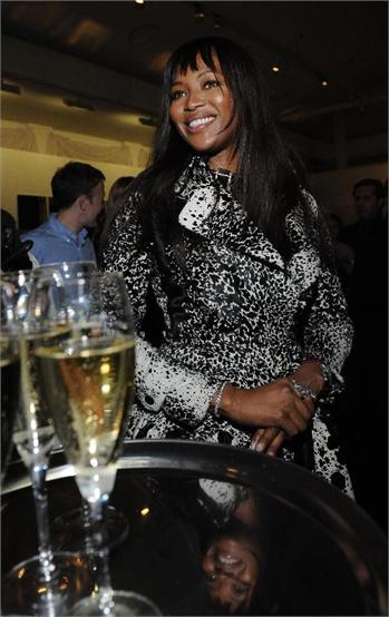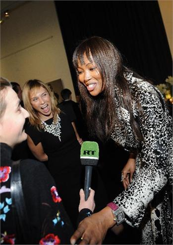 Supermodel Naomi Campbell is offered a glass of champagne at an exhibition of Russian dolls (matryoshkas) by famous fashion designers auctioned off for charity at Moscow's Manezh Central Exhibition Hall. The event entitled '10 Years in Vogue' marks the 10th anniversary of Vogue Russia. November 21st.