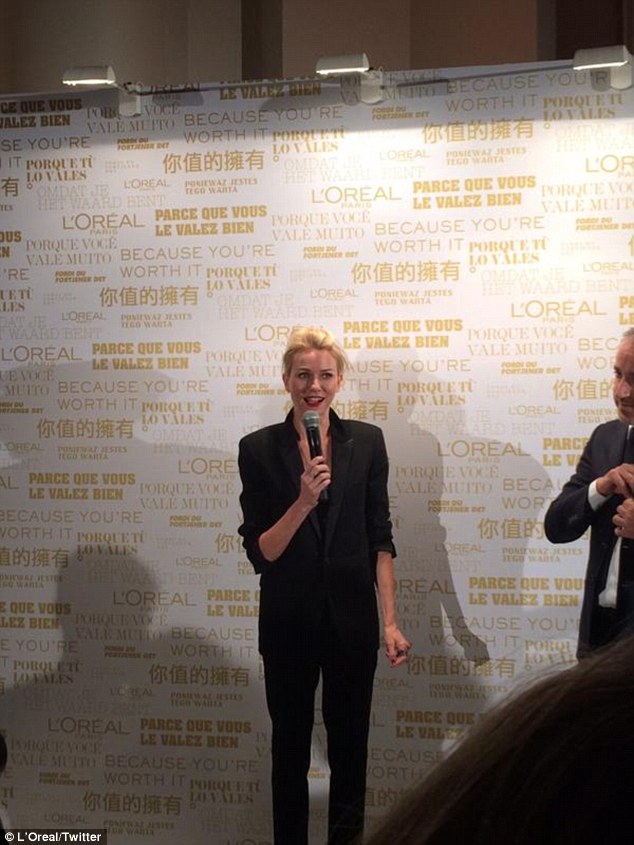 Naomi was just named ambassador to L'Oreal. Here she is at the announcement dinner.