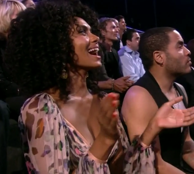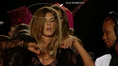Notice how her hair is flat in both backstage shots
