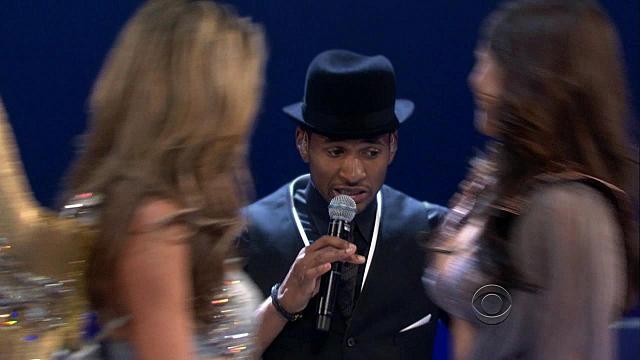 @Pink: I wasn't talking about Alessandra or Adriana. I was talking about Usher's little hat. Since Alessandra was the second girl in the line-up, it would be weird that Usher already has his hat off (because Heidi was the one to take it later in the segment). And remember, Izabel had different shoes on, which means somehow Usher got the hat back from somebody.