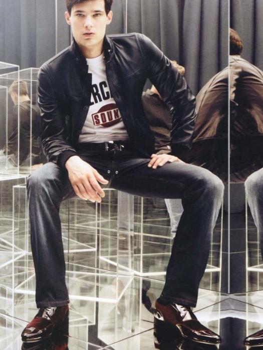 "We first met Danny Schwarz, the charismatic young Brit backstage last season in N.Y. He's having a superb FW09 show season after booking Belstaff, Bottega Veneta, Cavalli, Dolce and Gabbana, John Richmond and Versace." (courtesy MDC)