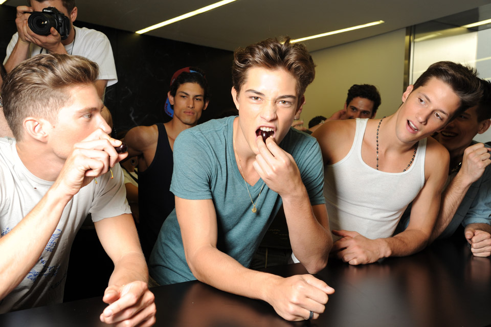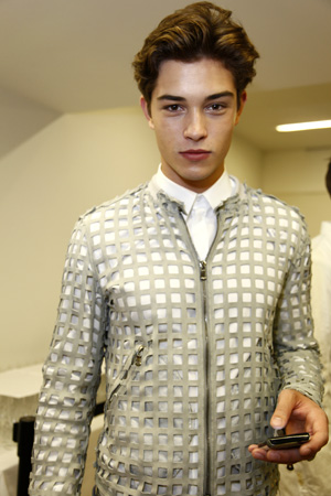 Backstage at the D&G Menswear SS12 I took the time to go beyond the questions and relax with some of the world’s most desired male models and let them decide which way the conversation flowed.Arms folded and taking a moment to himself, I interrupted Francisco Lachowski’s daydream and sat down next to him and started chatting. As we talked we started to discuss his fashion runway style and what goes through his head when he has all eyes on him. “Focus”, he said, “I am focused and I make sure that I am in the zone” he confirmed as he attempted to take me through a demonstration whilst sitting down. When asked about the other models who pass him during a show and whether he ‘sees’ them he said that he is always of aware of someone passing by but as to who and what they are wearing, he has no idea.