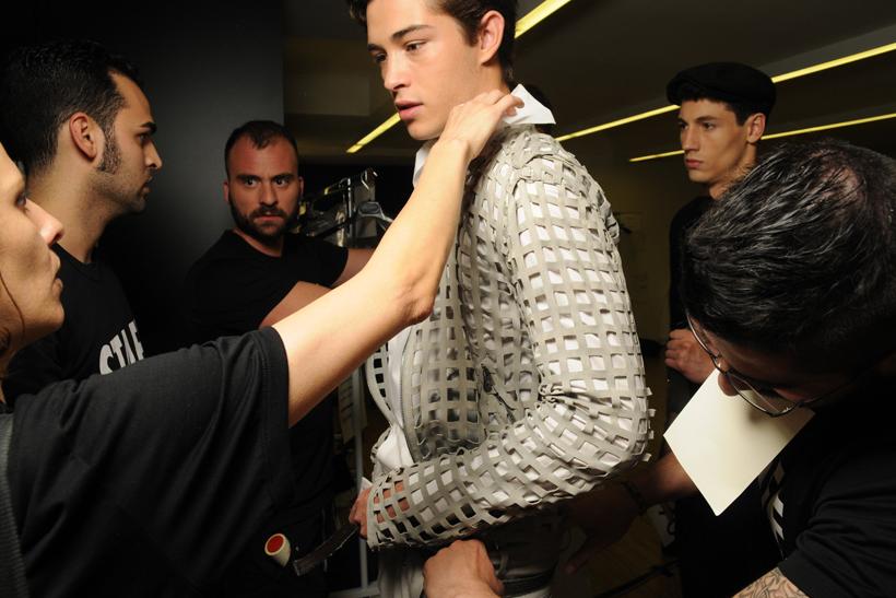 He said that the other model was moving and he had to attempt to stay instep with him and copy what he was doing as closely as possible, “a kind of choreography" he finished. Lachowski said that the experience is only one example of many but the use of mimic challenged his priorities more than before. When it was time for him to do the show he said that it was “cool” and, in fact, didn’t have problems with multi-tasking. And then a woman with a make-up brush whisked him away for more touch ups.