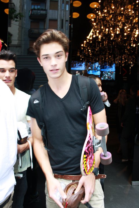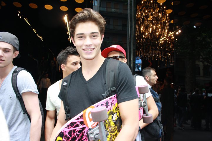 That's what I love about him. He is adored by fashion designers and they place him in such couture outfits on the runway. But when the show is over, he wipes off the make-up, shakes his hair, puts on a sweatshirt and grabs his skateboard. It's in pictures like ^these^ that you can see he really is just a young Brazilian guy who loves to skateboard and surf, and doesn't really give a crap about wearing D&G. It's totally endearing to see this kind of guy travel the world, modelling for all the top designers. ![]()