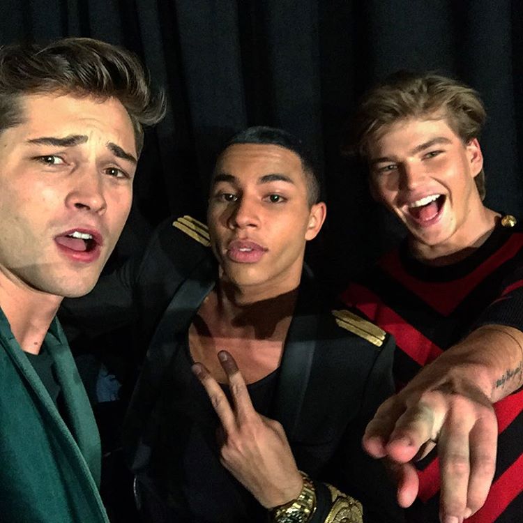 #FranciscoLachowski #BenjaminBenedek #RichieCotterell #JordanBarrett and backstage at the Balmain x @hm launch event in NYC